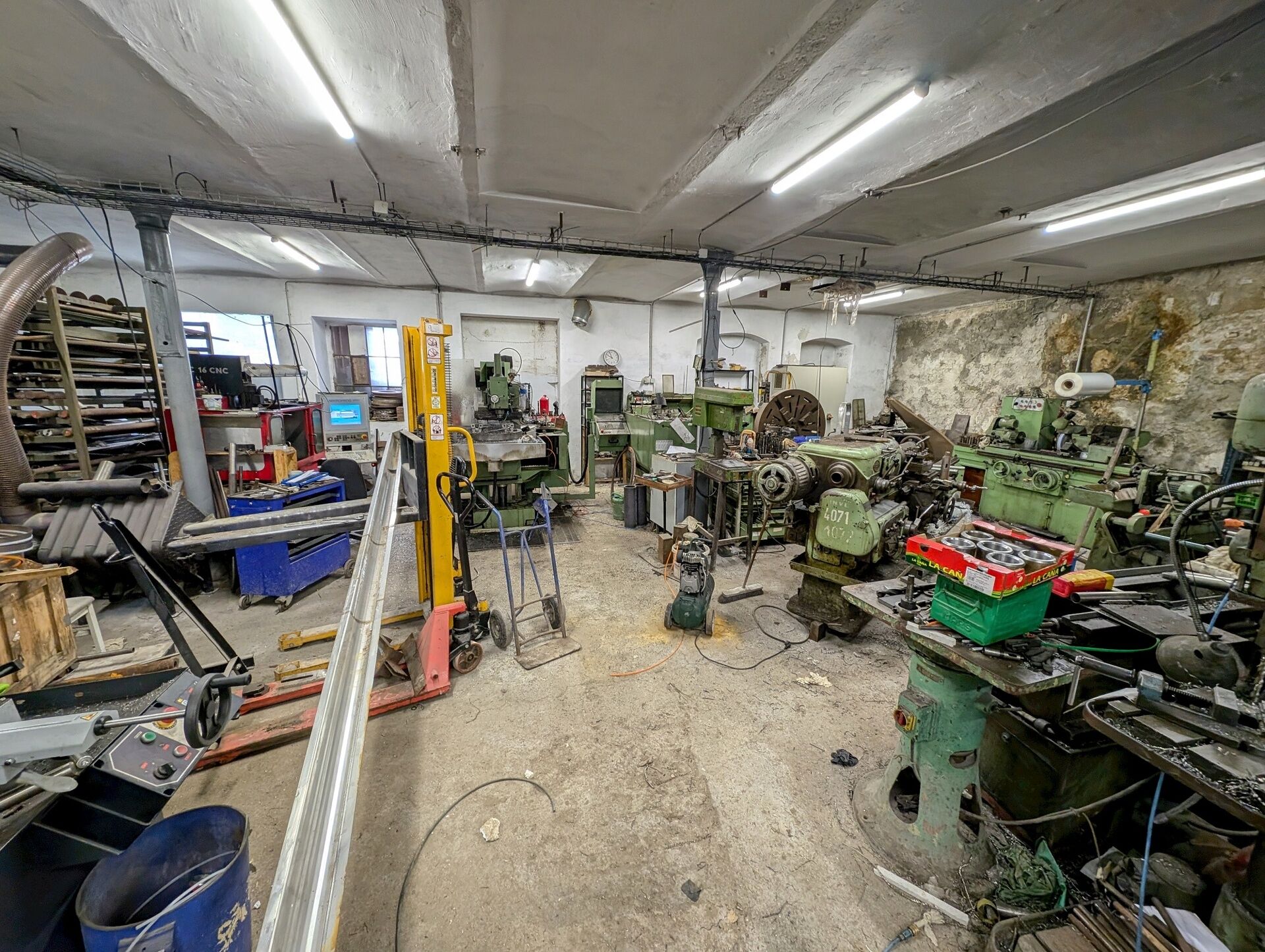 V části 1. patra budovy bylo vybudováno 8 převážně malometrážních bytů, které jsou pronajímány (celková rekonstrukce, včetně nových oken). Část dílen v přízemí je pronajata několika firmám. Vlastník užívá zbytek budovy včetně pater k montážním pracím a ke skladování materiálu. V budově je nákladní výtah bez revizí. Do hal v přízemí je vjezd vraty v úrovni terénu. Střechy na celém objektu byly kompletně vyměněny včetně samonosné konstrukce (příhradové vazníky), proto v patře pod střechou je možné podpůrné sloupy zcela odstranit. Část stropů je klenbová/hurdisková, část z masivních dřevěných fošen.