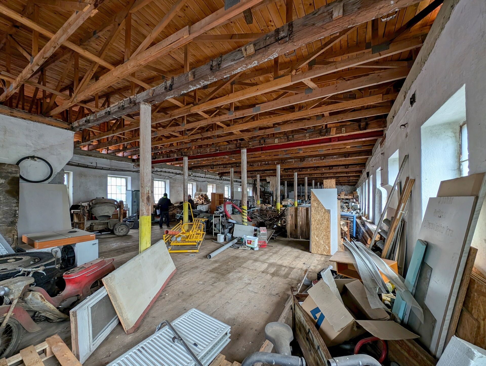 Hlavní budova je jedno až třípodlažní, postavená do tvaru písmene “U”, o celkové zastavěné ploše cca 1.750 m2. Jedná se o masivní zděnou stavbu se dvěma řadami sloupů v halách. Budova zahrnuje dílny, sklady, denní místnost, umyvárnu a sociální zázemí