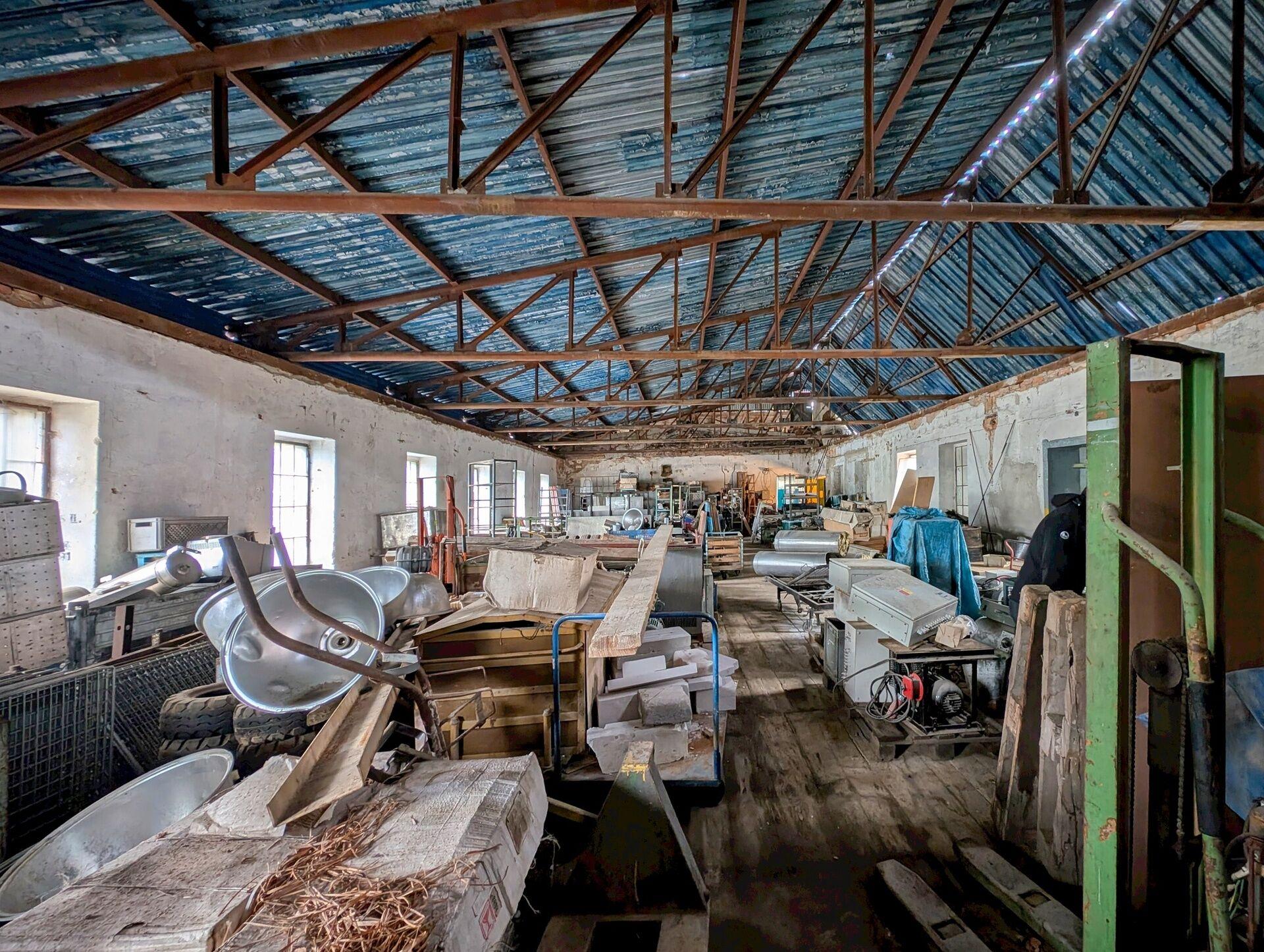 Hlavní budova je jedno až třípodlažní, postavená do tvaru písmene “U”, o celkové zastavěné ploše cca 1.750 m2. Jedná se o masivní zděnou stavbu se dvěma řadami sloupů v halách. Budova zahrnuje dílny, sklady, denní místnost, umyvárnu a sociální zázemí
