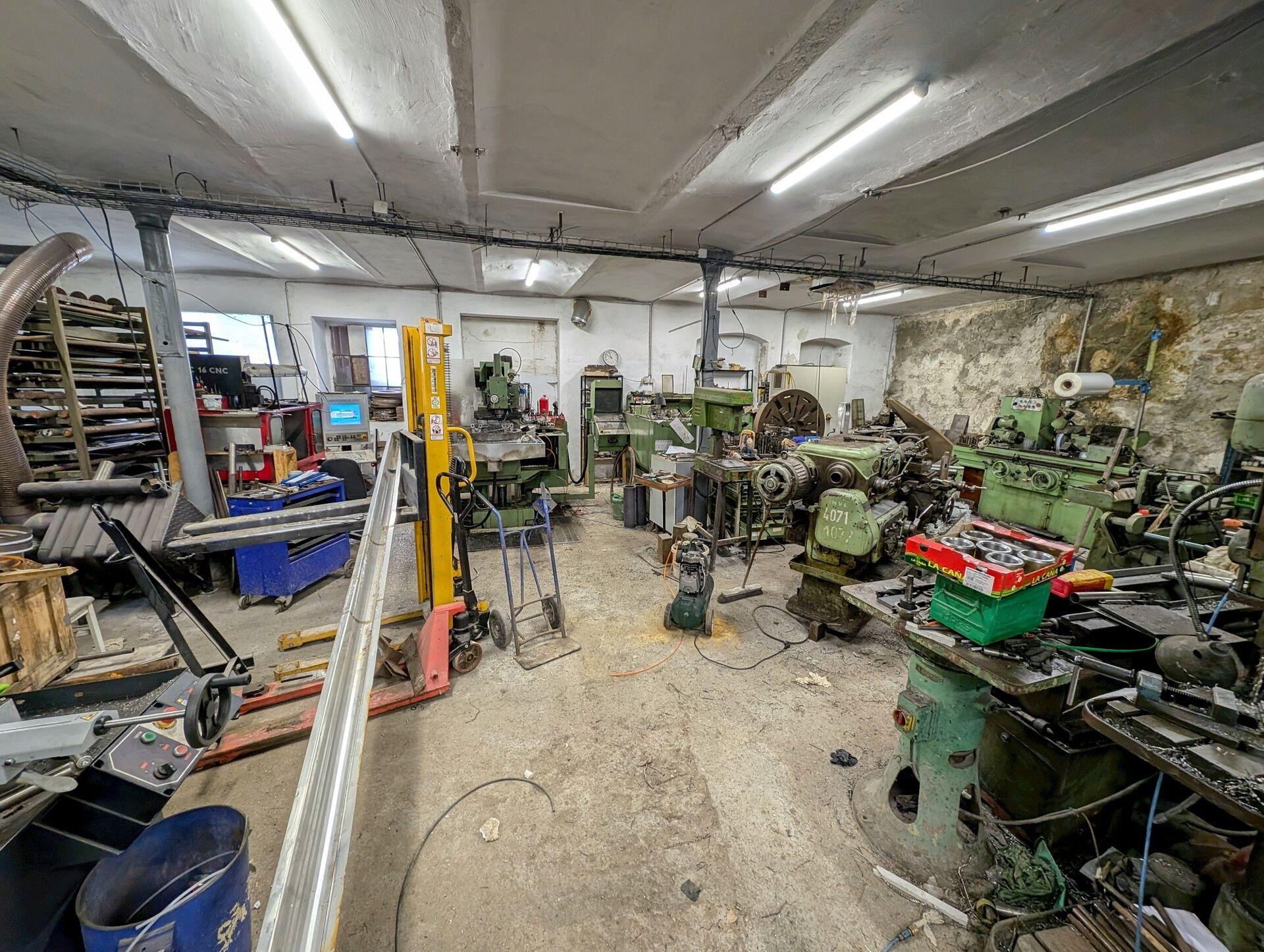 Hlavní budova je jedno až třípodlažní, postavená do tvaru písmene “U”, o celkové zastavěné ploše cca 1.750 m2. Jedná se o masivní zděnou stavbu se dvěma řadami sloupů v halách. Budova zahrnuje dílny, sklady, denní místnost, umyvárnu a sociální zázemí