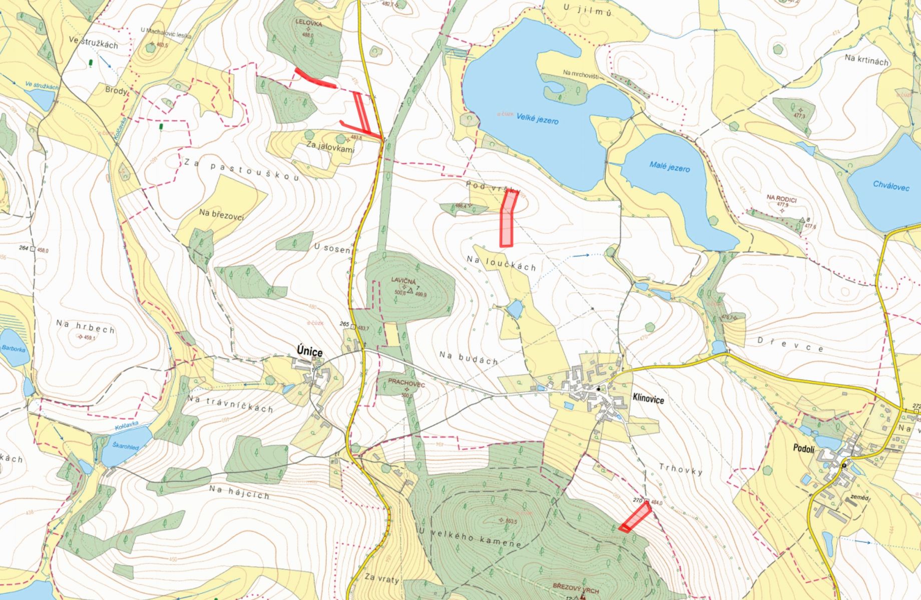 V katastrálních územích Hubenov u Třebohostic (obec Únice), Klínovice (obec Chrášťovice), Třebohostice a Únice (okres Strakonice) nabízím k prodeji soubor zemědělských pozemků a vlastnictví na zemědělských pozemcích.