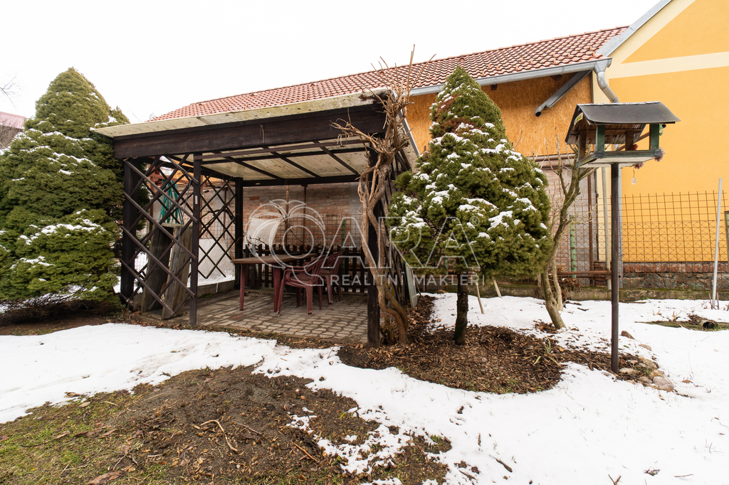 K dispozici zahrada (cca 1200 m2), pergola s posezením, dvůr - možnost parkování, garáž - dílna.