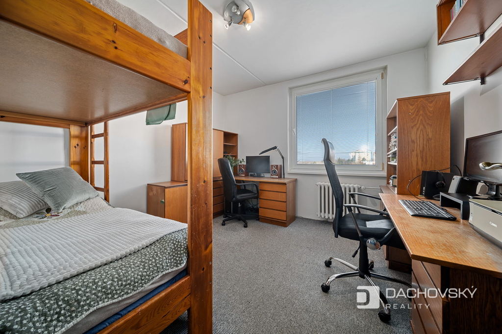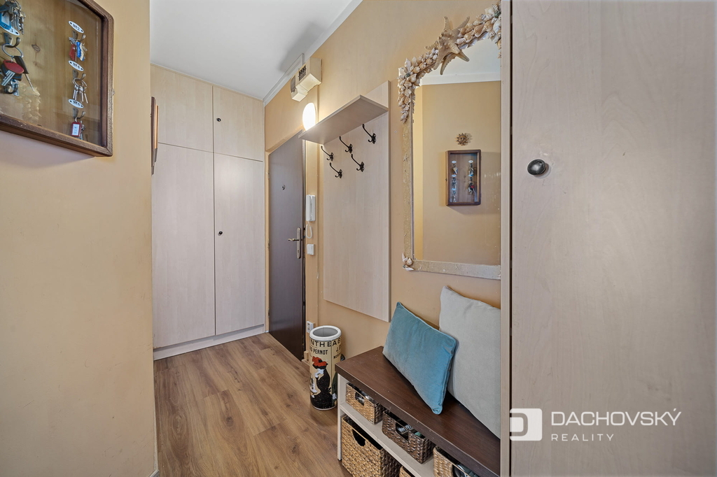 Byt prošel částečnou rekonstrukcí – nové vinylové podlahy, nové dveře s obložkami a vestavěné skříně. Koupelna je po kompletní rekonstrukci a je vybavena sprchovým koutem a keramickým obkladem. WC je samostatné. K bytu náleží sklepní kóje.