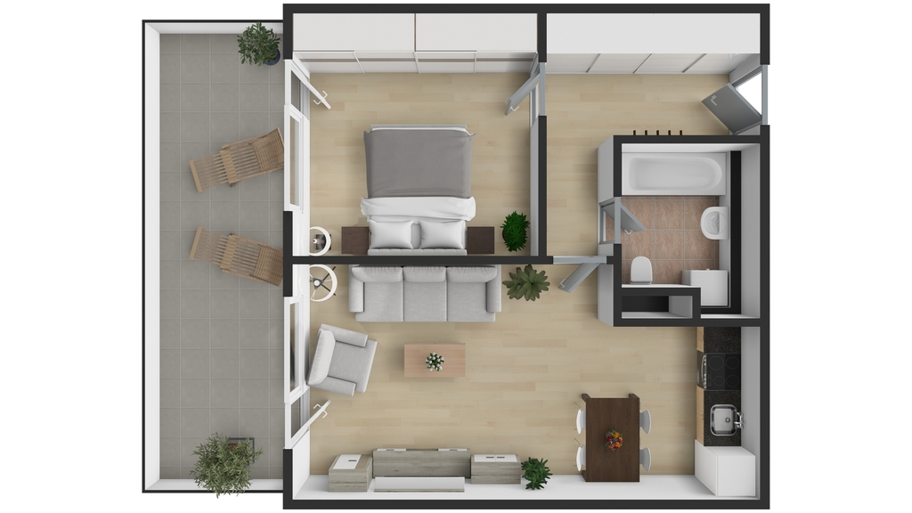 • Dispozice: 2+kk – prostorný a světlý obývací pokoj propojený s kuchyňským koutem, samostatná ložnice, koupelna s vanou a WC, prostorná chodba, prostorná terasa s výhledem do parku.