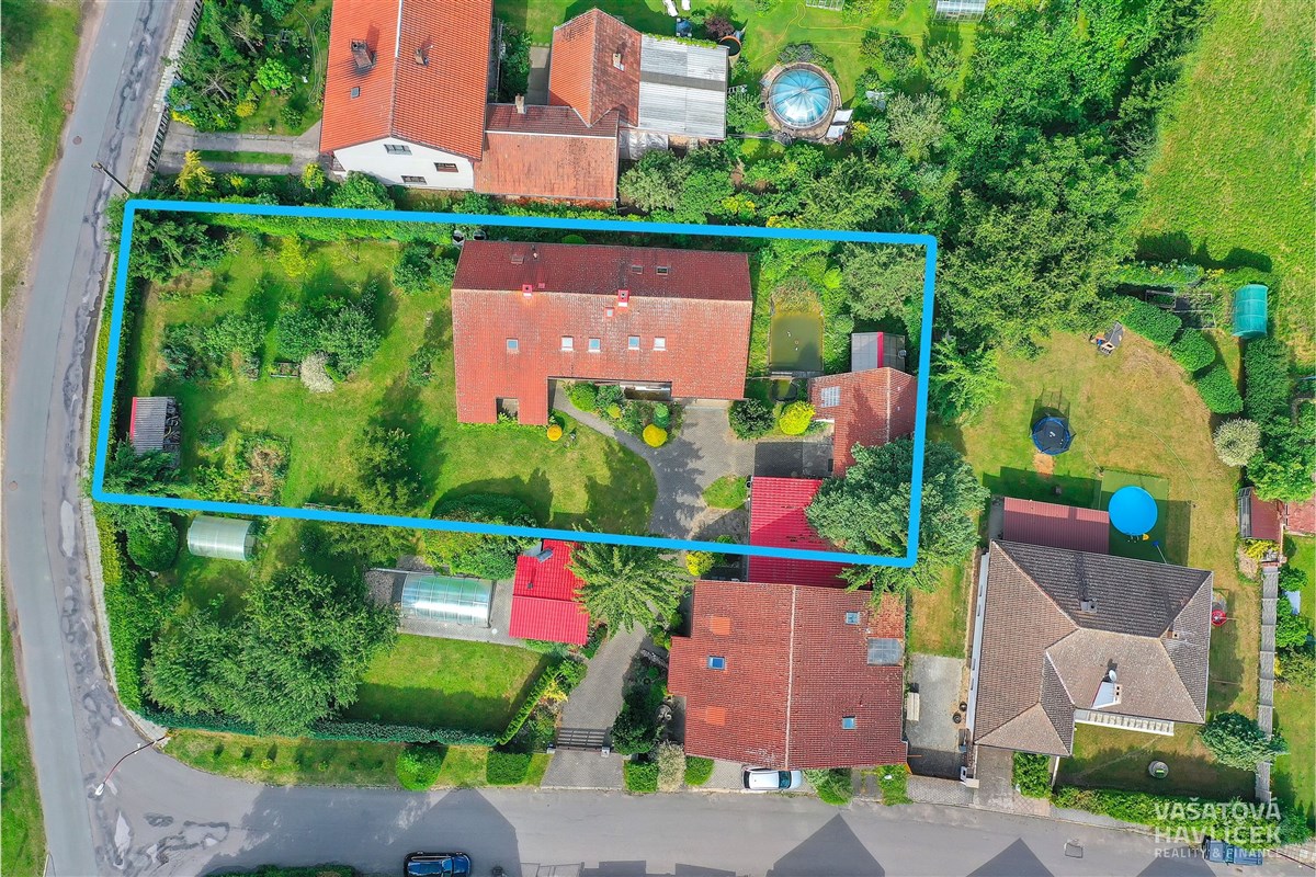Celková plocha pozemku je 1510m², zastavěná plocha domu činí 171 m². Celý pozemek je krásně udržovaný, jsou zde vzrostlé ovocné stromy a keře broskev, jabloň, maliny, rybíz. Na pozemku se nachází rodinný dům, na který je napojena velká garáž (31 m²). Nad garáží je půdní prostor, který nabízí další využití. Jako samostatný objekt je zde velké technické zázemí: dílna, sklad, sklep na ovoce a zeleninu a bývalá udírna, z ní se jde na zastřešenou terasu, kde je posezení a venkovní grill s udírnou a malý rybník (cca 15m²).
