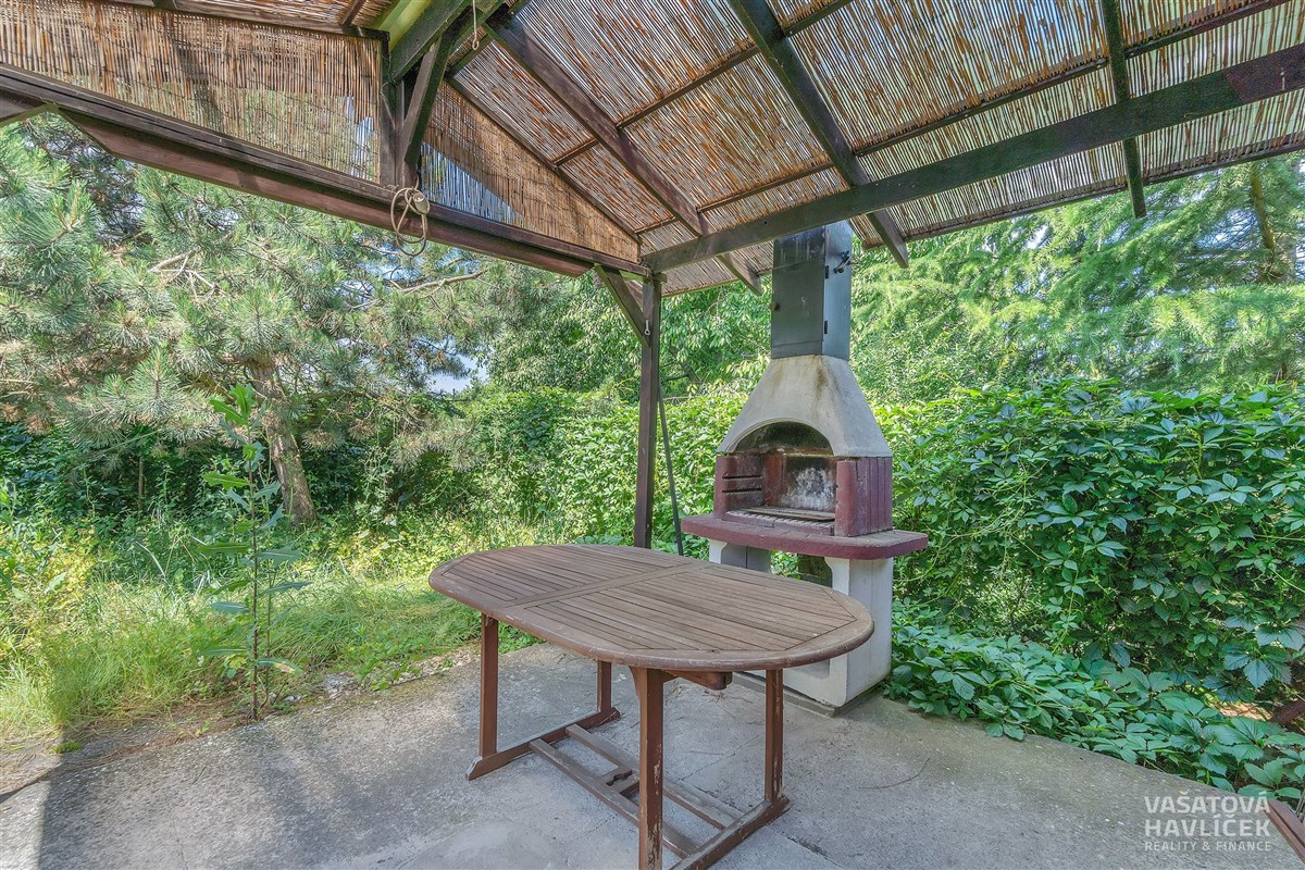 Celková plocha pozemku je 1510m², zastavěná plocha domu činí 171 m². Celý pozemek je krásně udržovaný, jsou zde vzrostlé ovocné stromy a keře broskev, jabloň, maliny, rybíz. Na pozemku se nachází rodinný dům, na který je napojena velká garáž (31 m²). Nad garáží je půdní prostor, který nabízí další využití. Jako samostatný objekt je zde velké technické zázemí: dílna, sklad, sklep na ovoce a zeleninu a bývalá udírna, z ní se jde na zastřešenou terasu, kde je posezení a venkovní grill s udírnou a malý rybník (cca 15m²).