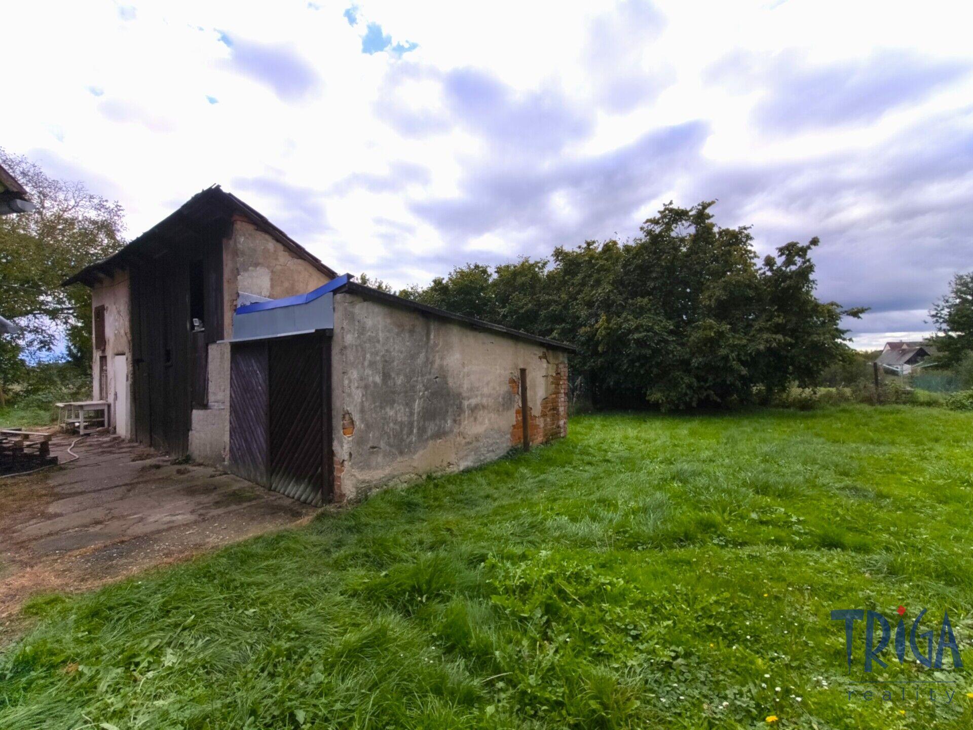Součástí nabídky je také zděná stavba naproti domu – dílna, kůlna a garáž o ploše cca 62 m².