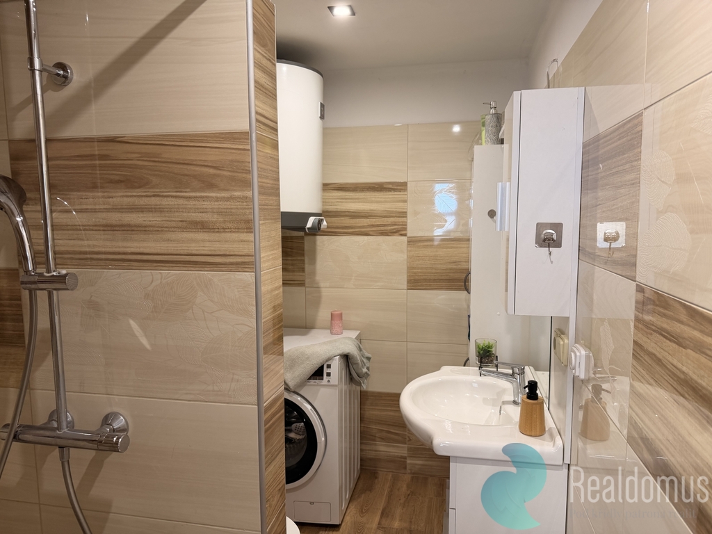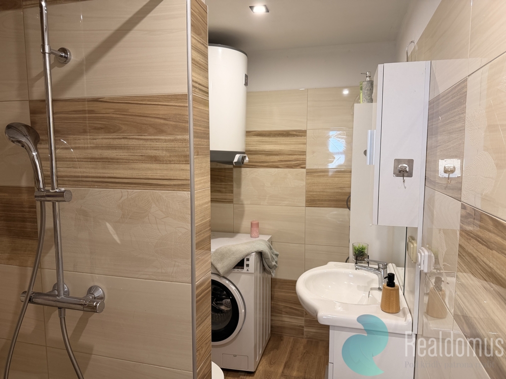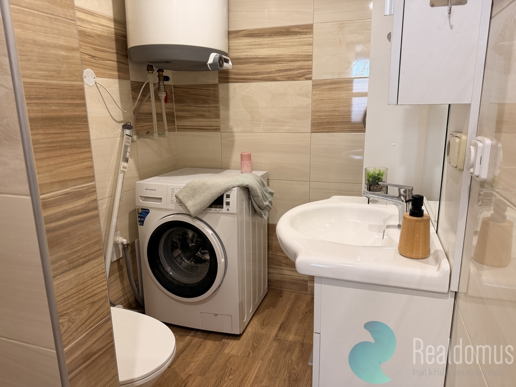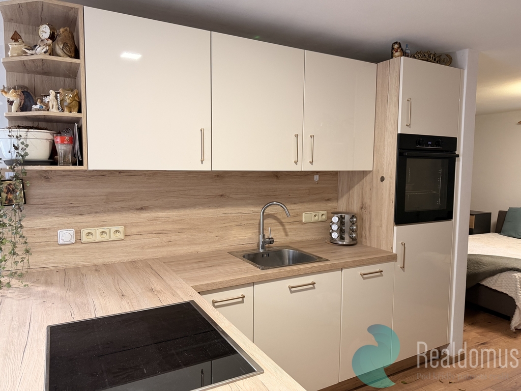 Nová vestavba bytové jednotky o výměře 40m2 je situována samostatně na protější straně uzavřeného dvora. Nabízí dispozici nové kuchyňské linky s vestavnými spotřebiči, obývací pokoj a koupelnu se sprchovým koutem. Je zde komfortní podlahové vytápění, které zajišťuje elektrický kotel.