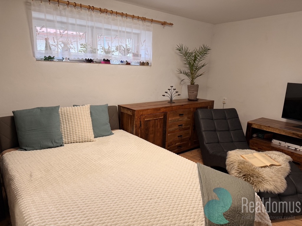 Stará kamenná stavba před rekonstrukcí, ale s možností okamžitého bydlení nabízí dispozici bytu 2+1 a je vytápěna krbem. Jedná se o obývací pokoj, dětský pokoj, kuchyni, koupelnu, komoru a sklad. V přípravě je další místnost v 1NP a také možnost obyvatelného podkroví.