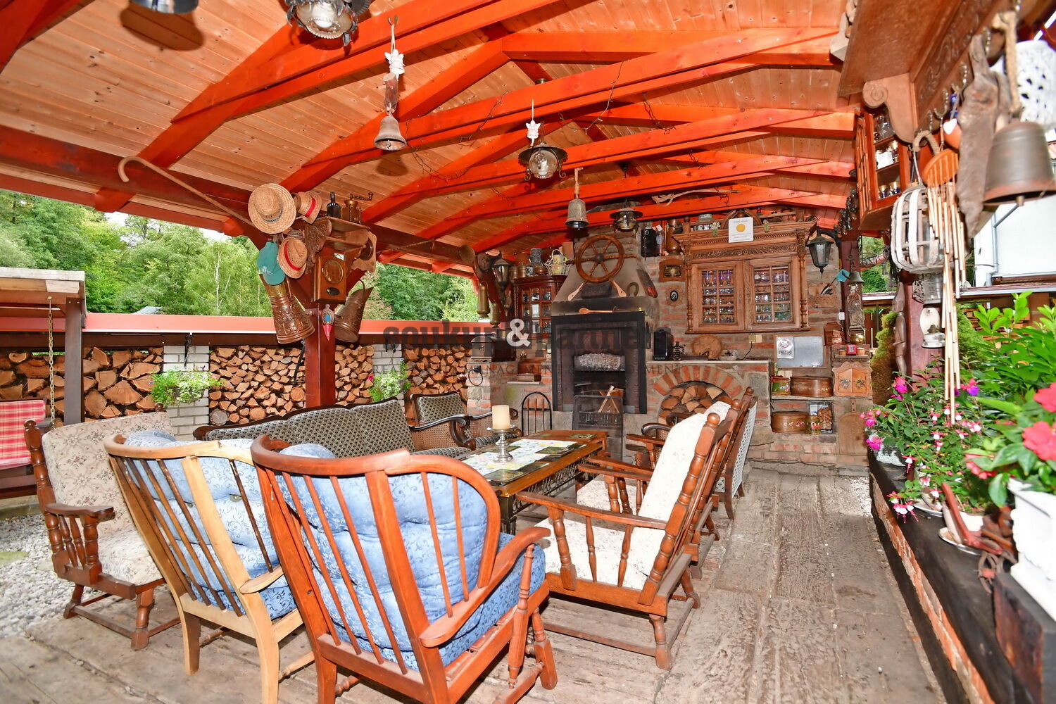 Rodinný dům 4+1 + balkon, 170 m2, pozemek 1.247 m2, který se nachází v obci Chýňava, okr. Beroun. Jedná se o částečně zděnou stavbu po kompletní rekonstrukci. Dispozice domu: 1.NP - sauna, kuchyňská linka se spotřebiči (myčka, indukční varná deska, lednice s mrazákem), koupelna se sprchovým koutem a místem na pračku, technická místnost (kotel na tuhá paliva, bojler), 2.NP - hlavní vstup do domu, obývací pokoj, kuchyň s jídelním stolem a kuchyňskou linkou se spotřebiči (horkovzdušná trouba se sklokeramickou varnou deskou, myčka, digestoř, lednice s mrazákem), ložnice, koupelna s rohovou vanou a WC, 3.NP - 2x pokoj, balkon a půda. Dům je připojen na elektřinu, vytápění kotlem 5 třídy na tuhá paliva, teplá voda zajištěna bojlerem. Odpad je řešený čističkou odpadních vod a voda je užívána z vlastní kopané studny. Na pozemku se nachází pergola s krbem, terasa s posezením, zahradní domek a přístřešky na dřevo. Dům je přístupný autem, možnost parkování 2 vozidel na vlastním pozemku v horní části parcely, popřípadě také na vlastním pozemku na spodní parcele. Stavba má sice číslo evidenční, jedná se o rekreační objekt, ale je vhodná k celoročnímu bydlení a je zde možné mít trvalý pobyt. Dobrá dopravní dostupnost - Unhošť 5 minut, Praha 15 minut autem. Veškerá občanská vybavenost v okolí - 6 km Unhošť, popř. cca 12 km Beroun - Kladno. Pro více informací kontaktujte manažera nabídky. Z důvodu, že před zadáním do inzerce nebyl k dispozici platný PENB, je tato nemovitost v souladu s platným zákonem dočasně do jeho předložení zařazena do energetické třídy G.