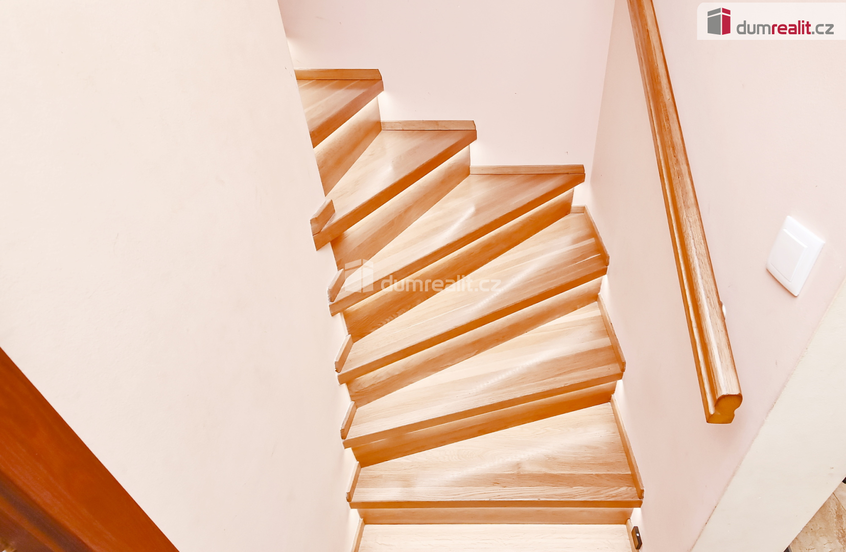 Prodej rodinného domu o dispozici 4+kk, s krásnou zahradním architektem navrženou zahradou, na které se nachází jak zastřešené posezení pro větší rodinu, tak okrasnou zahradu, která je pohledově z obývacího pokoje. Dále dvě parkovací stání za dálkově ovládanými vraty, tak i za domem dřevěný domek pro zahradní nábytek a potřeby na zahradu. Dům je velmi dobře architektonicky řešený, s mnoha vynikajícími detaily, které tento dům dělá velmi osobní a unikátní. V přízemí domu se nachází předsíň, ze které se jde dále do obývacího poje s kuchyňským koutem, dále do koupelny se sprchovým koutem a WC, a technické místnosti ve které se nachází elektrický kotel, pračka se sušičkou a dostatkem prostoru pro úklidové prostředky. Po schodech, které neprochází žádnou místností, tudíž jsou nerušící, mají zajímavé podsvětlení, se jde do patra, kde se nachází velká koupelna s vanou a WC, prostorná šatna, kterou jistě oceníte, dále tři samostatné pokoje. Celý dům působí vzdušně a prostorně, i díky zajímavým osvětlením, členěním a praktičností. Orientace domu je na jih, západ a sever. Obývací pokoj s kuchyňským koutem a dále dva pokoje v patře jsou na jih, jeden pokoj v patře je na západ a koupelny a technická místnost jsou na sever. Hezký je výhled z obývacího pokoje na krásnou udržovanou zahradu, se zabudovanou automatickou závlahou. Tento dům Vám opravdu doporučujeme, je velmi praktický a dělaný se vkusem. Ev. číslo: 655019.