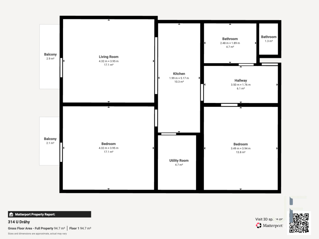Dispozice 3+kk s užitnou plochou 80 m² zahrnuje: