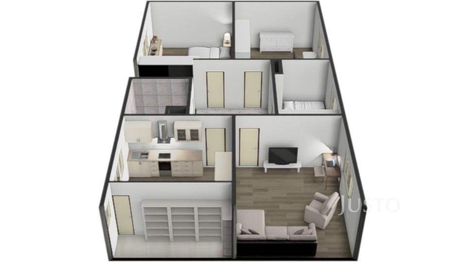 Patro: bytová jednotka 4+1 se spíží, přístupná po vnitřním schodišti vybaveném plošinou pro osoby se sníženou pohyblivostí
