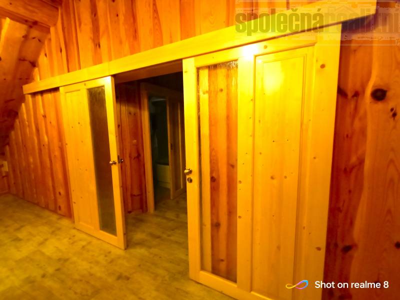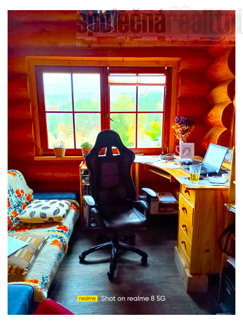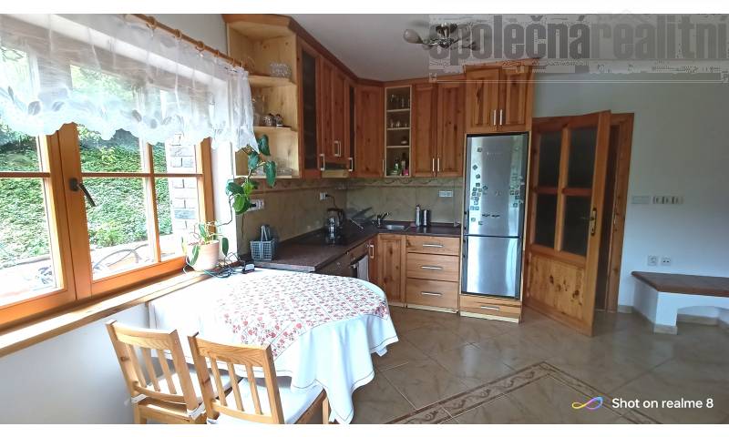 Nabízíme k prodeji jedinečný srubový dům v klidné přírodě a těsné blízkosti Prahy. Dům je řešen jako dvougenerační, v přízemí dispozice 2kk s prostornou koupelnou se sprchovým koutem i masážní vanou, dále úložné prostory a technické zázemí. Horní 2 patra tvoří jeden celek s dispozicí 4kk, koupelna opět s masážní vanou i sprchovým koutem. Z hlavní místnosti vstup a prostornou a zčásti krytou terasu. Obě bytové jednotky mají samostatné vchody zvenčí. Na pozemku dále rekreační chatka, použitelná k občasnému přespání návštěv. Dům vytápěn interierovým kotlem Verner nejvyšší řady, který je připojen k akumulační nádrži a systému podlahového vytápění v obou jednotkách. Dolní byt ale lze otočením kohoutu oddělit a vytápět samostatným elektrokotlem, horní byt rovněž připojen k samostatnému elektrokotli. Kromě toho ještě ve spodní jednotce kachlema obezděná krbová vložka, která ji také samostatně bez problémů vytopí. V horní jednotce zase navíc kachlový sporák s troubou. V celém domě dřevěná eurookna, v přízemí ještě opatřena elektrickými předokenními roletami.