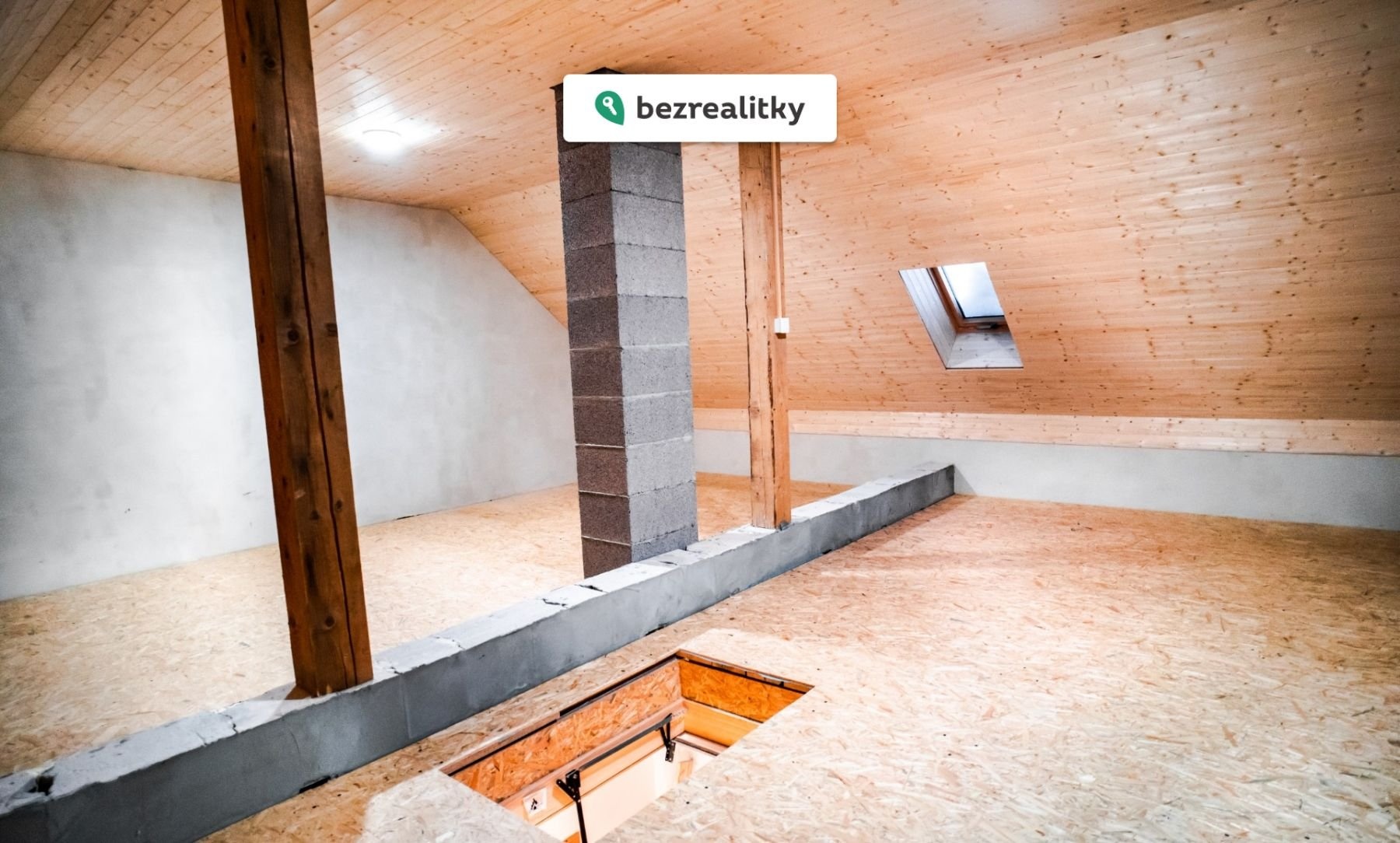 Z chodby vede vstup do půdního prostoru pomocí skládacích schodů. Půda není vedena jako obytný prostor, je však zateplená a nabízí další potenciál využití (např. skladování či budoucí úpravy dle stavebních možností).