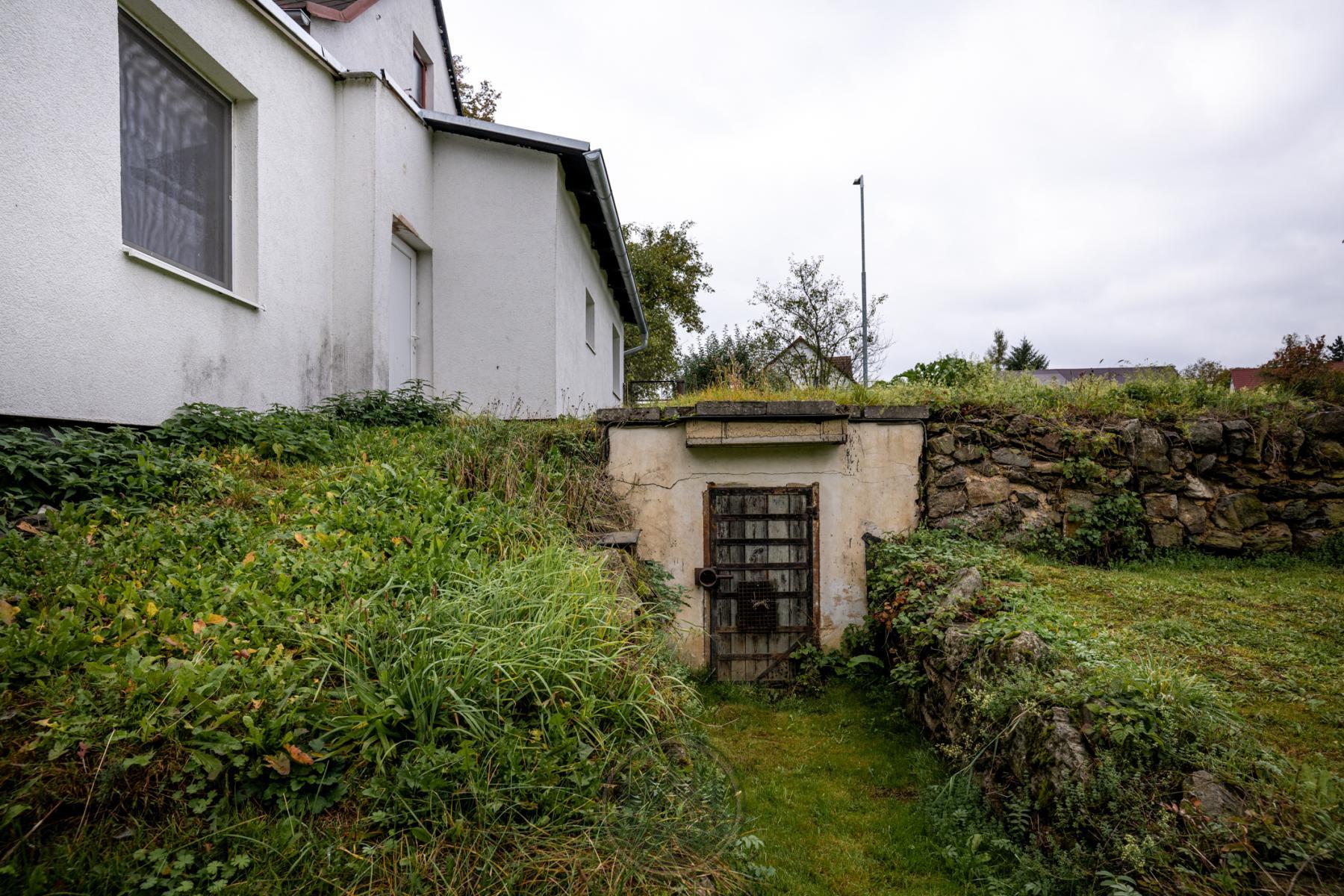 Na dvoře se nachází prostorná zděná garáž, hospodářská budova využívaná pro chov slepic a samostatný zemní sklep, ideální pro uskladnění zeleniny. U vstupu do domu bylo navíc vybudováno zastřešené venkovní posezení, které vytváří příjemné místo pro odpočinek nebo rodinné grilování. Dvůr nabízí dostatek prostoru pro parkování, zahradní zázemí, drobný chov a zároveň skýtá možnost pro vybudování bazénu.