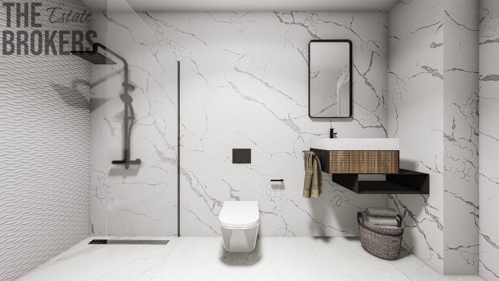 Výjimečné detaily: Od pancéřových vchodových dveří a PVC oken s nízkoemisním dvojitým zasklením až po kompletně vybavené koupelny s dešťovými sprchami, každý detail byl vybrán s ohledem na kvalitu a pohodlí.