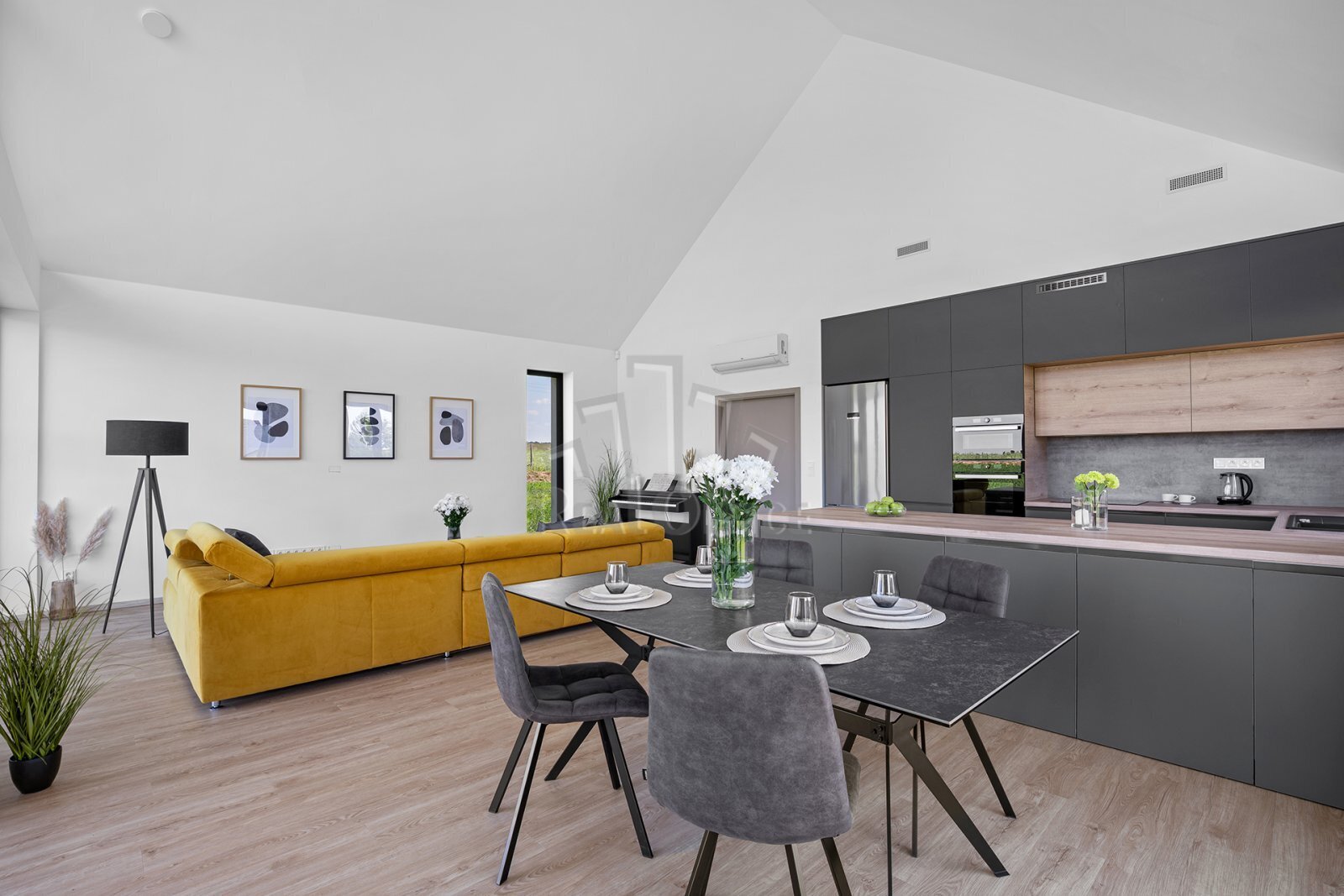 Tato nízkoenergetická, moderně řešená novostavba s užitnou plochou 151m2 stojí na vlastním pozemku o rozloze 7.362 m2, se zastavěnou plochou a nádvořím 193m2. Nabízí tak nejen komfortní bydlení, ale i dostatek prostoru a široké možnosti využití velkorysého pozemku.