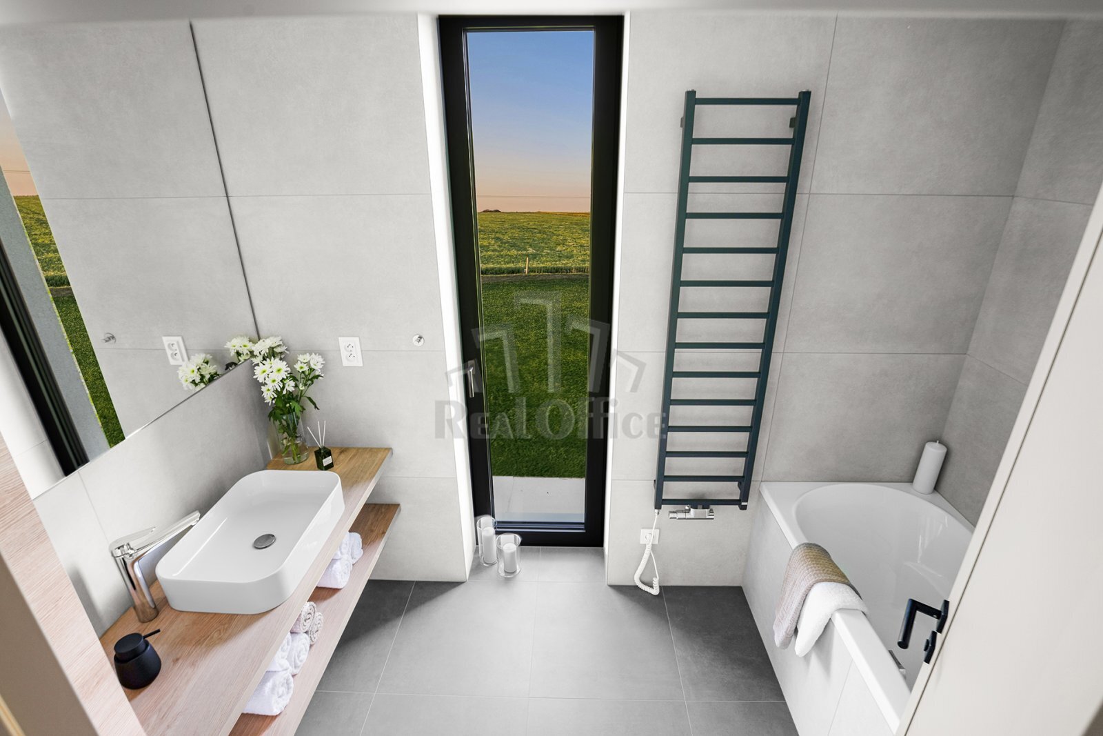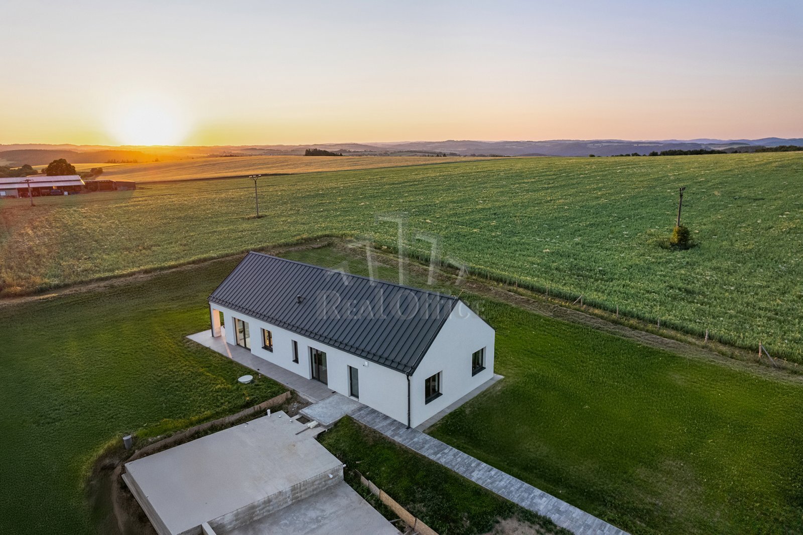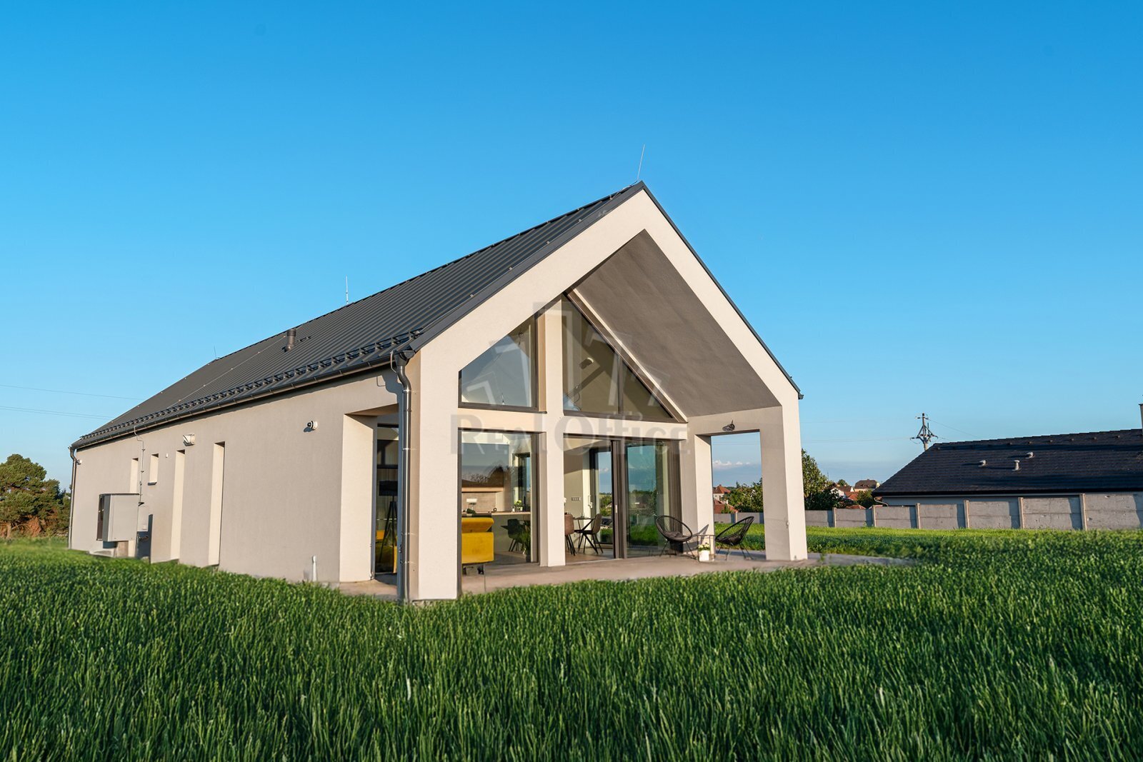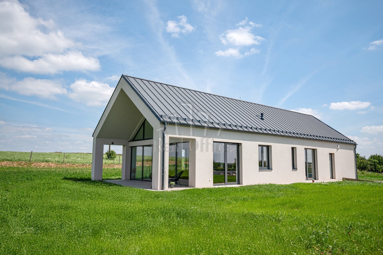 Jedná se o prosvětlený bezbariérový dům. K efektivnímu vytápění a úspoře energie slouží tepelné čerpadlo a rekuperace. Bílá fasáda domu je jednoduchá a čistá. Vytváří kontrast s tmavými prvky, což stavbě dodává sofistikovaný vzhled. Sedlová střecha je skvělá z hlediska odvodu vody a zároveň se esteticky hodí do venkovského prostředí.