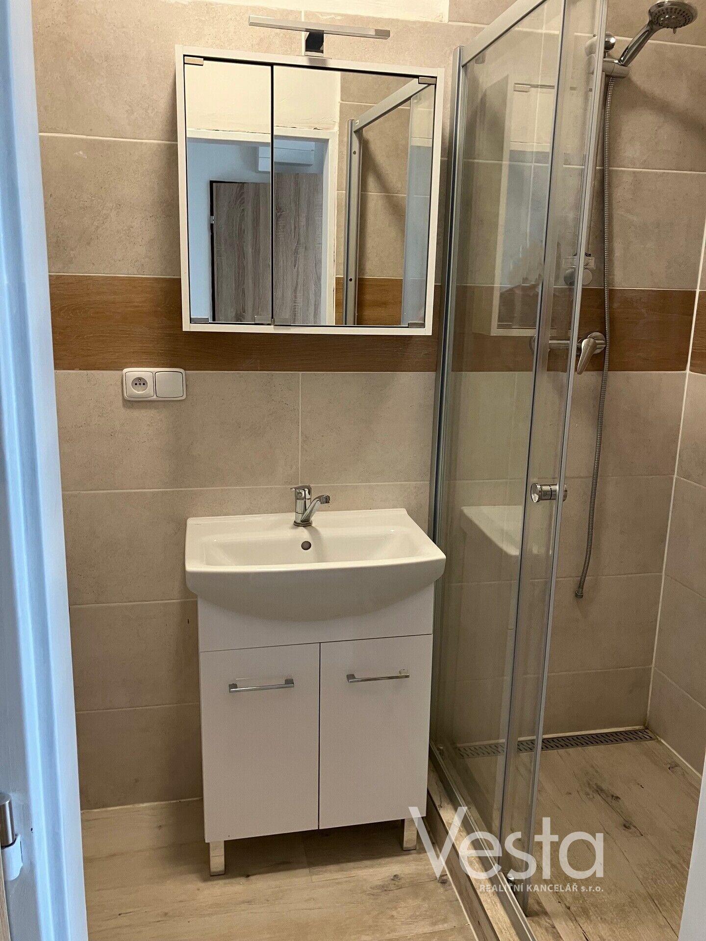 Byt prošel kompletní rekonstrukcí a jeho dispozici tvoří vstupní chodba, hlavní obytná místnost s kuchyňským koutem a moderní kuchyňskou linkou a koupelna se sprchovým koutem a toaletou. Vytápění bytu je ústřední centrálním plynovým kotlem v budově.
