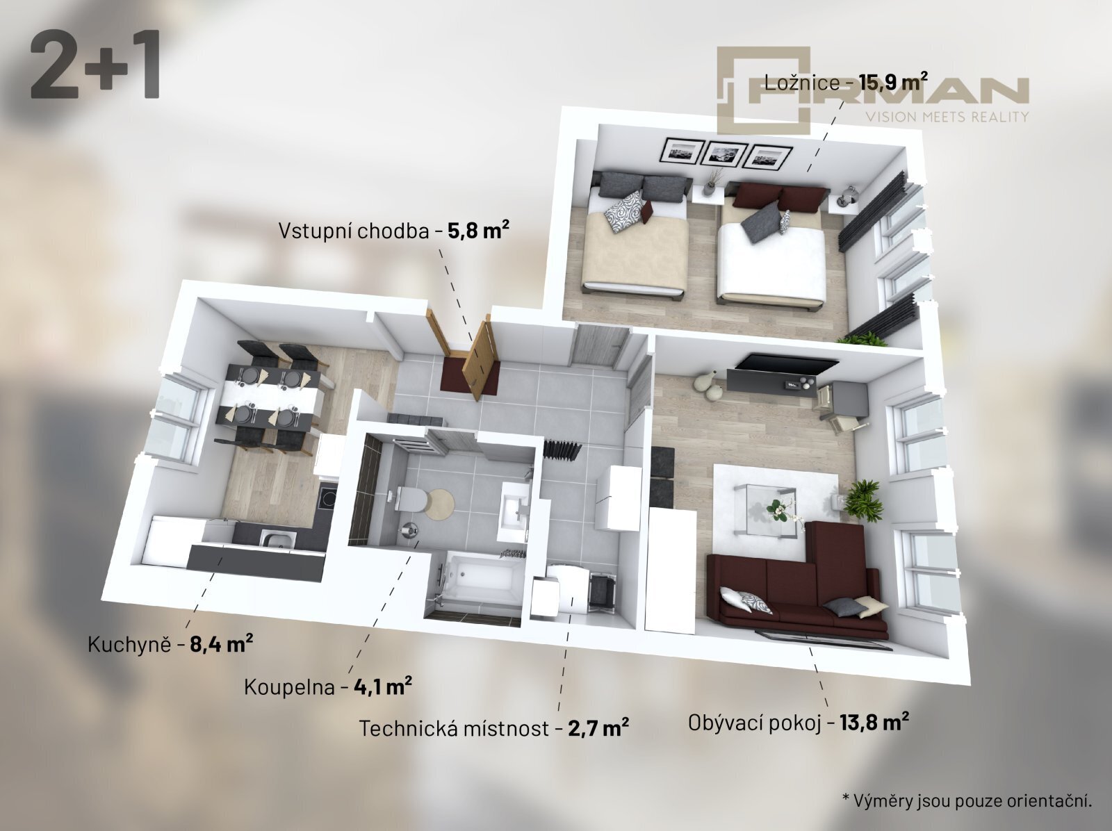 Tato jednotka tak nepředstavuje pouze standardní 2+1. Nabízí prostor, který má už dnes svou hodnotu a zároveň otevírá možnosti do budoucna. Pokud chcete místo, kde se spojuje pohodlné bydlení s investičním potenciálem, právě jste ho našli.