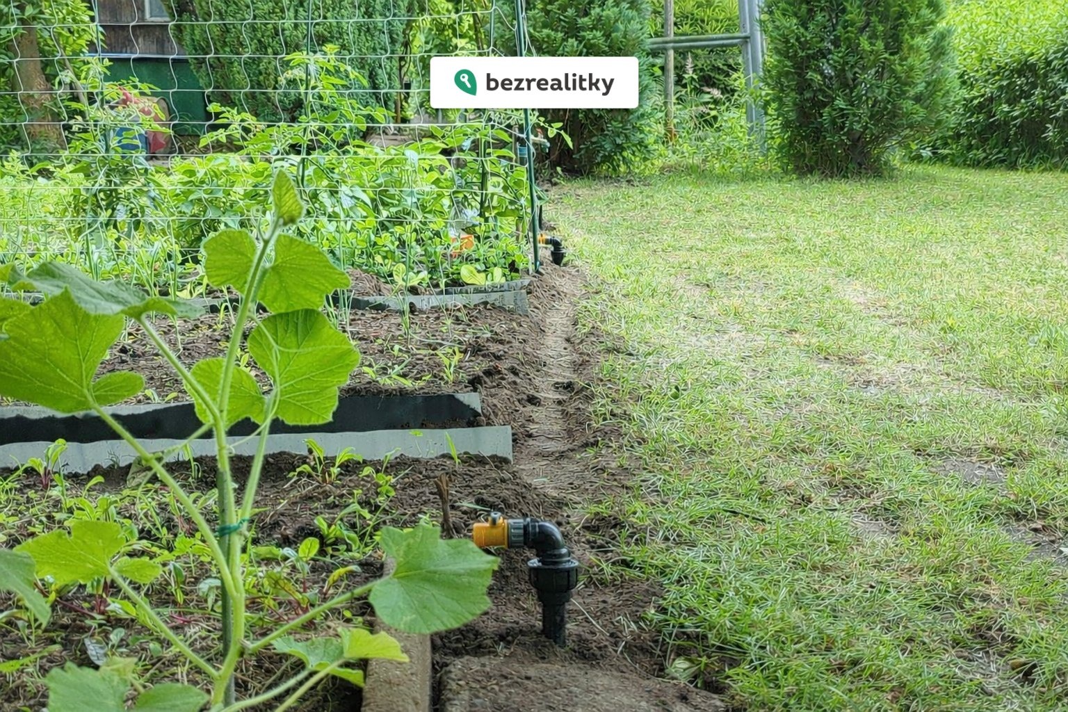Zahrada je téměř soběstačná – zavedené sítě a automatické systémy výrazně šetří čas i práci.