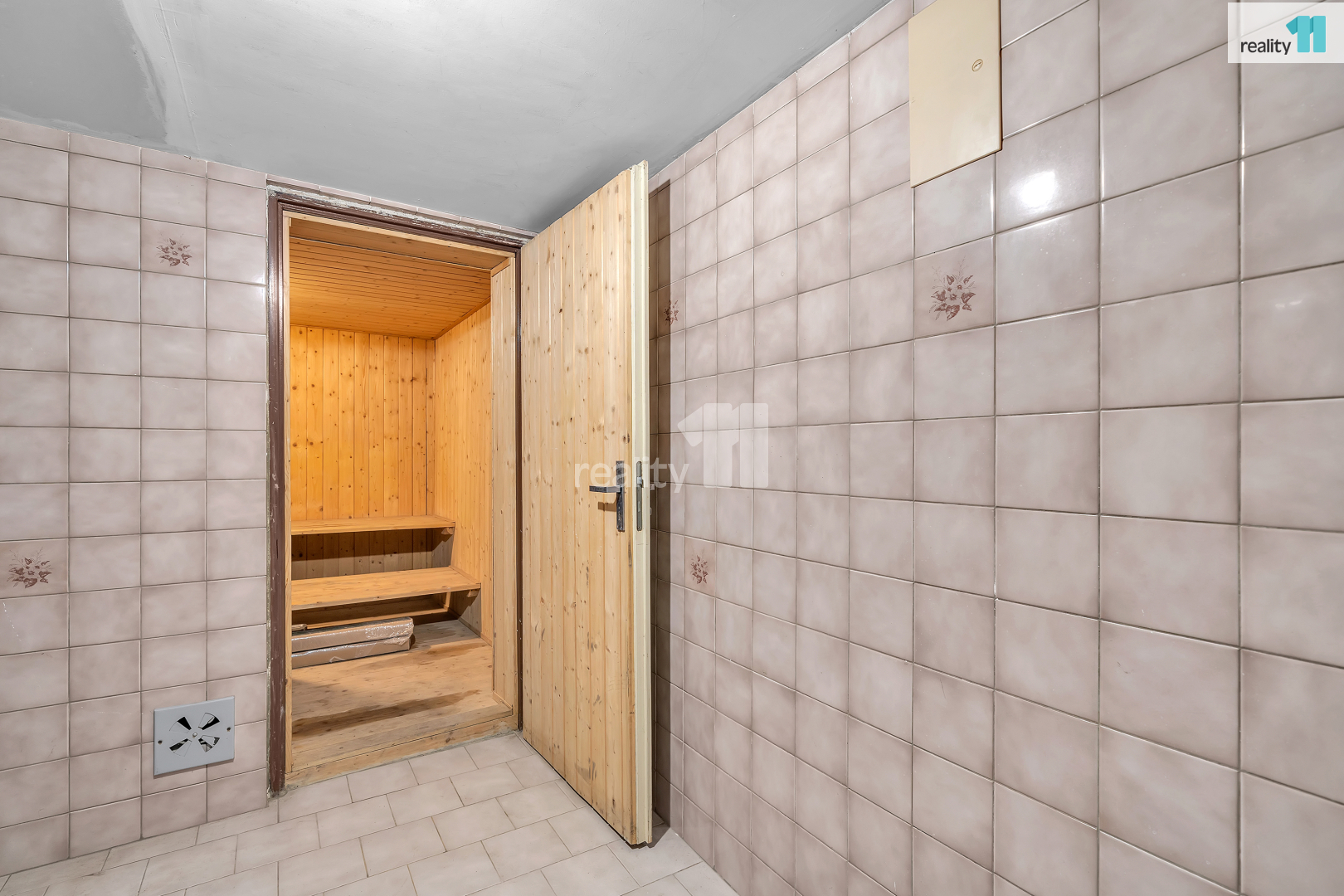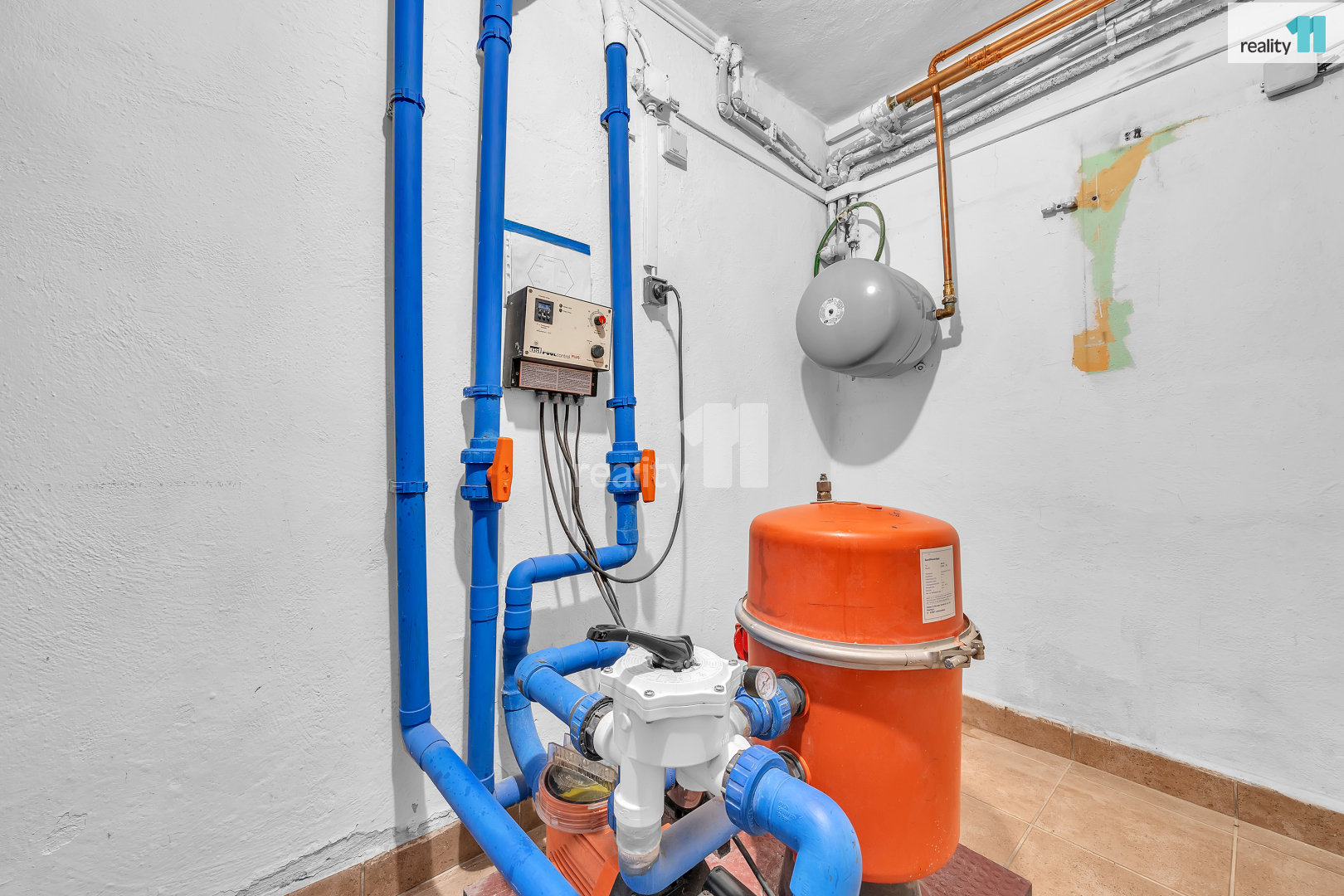 • Garáž v přízemí, kde se nachází také technické zázemí pro tepelné čerpadlo (20 kW) a filtraci bazénu.