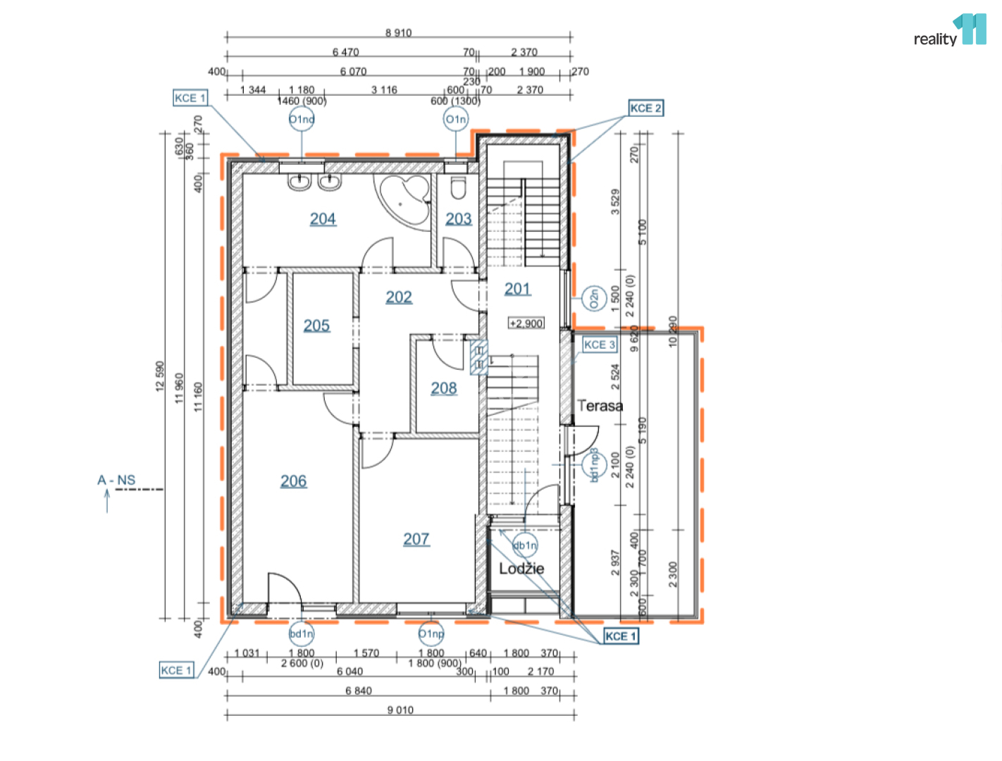 • 3NP a 4NP: 2. Bytová jednotka 4+kk o velikosti 171 m² – dva samostatné pokoje, šatna, koupelna s vanou, sprchovým koutem a WC, z tohoto patra vstup na prostornou terasu.