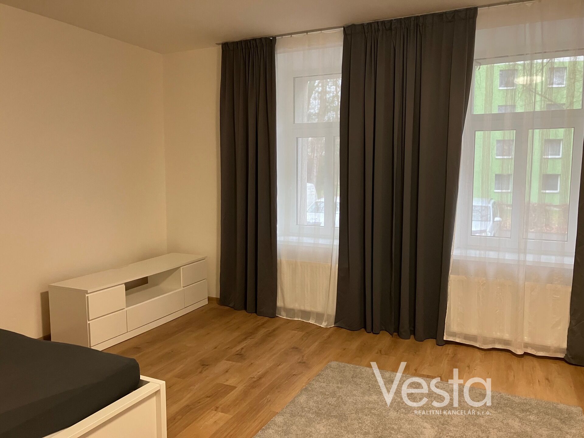 Byt je dispozičně rozdělen na vstupní chodbu s vestavěnou skříní, kuchyň s moderní kuchyňskou linkou, pokoj a koupelnu se sprchovým koutem a toaletou. Kuchyňská linka je vybavena sklokeramickou varnou deskou, elektrickou troubou, mikrovlnnou troubou, digestoří. Další vybavení bytu – lednice, jídelní stůl se židlemi, postel, komoda, pračka se sušičkou. Celý dům prošel nákladnou rekonstrukcí, byty jsou v nadstandardním provedení. Vytápění a ohřev teplé vody zajišťuje plynový kotel pro celý objekt s vlastními měřidly pro každý byt. Cena pronájmu je uvedena bez měsíčních záloh, které činí cca 3 700 Kč (voda 400 Kč/osoba, topení a ohřev teplé vody 3 200 Kč, osvětlení a úklid společných prostor 150 Kč). Elektřina je na vlastní náklady nájemce.