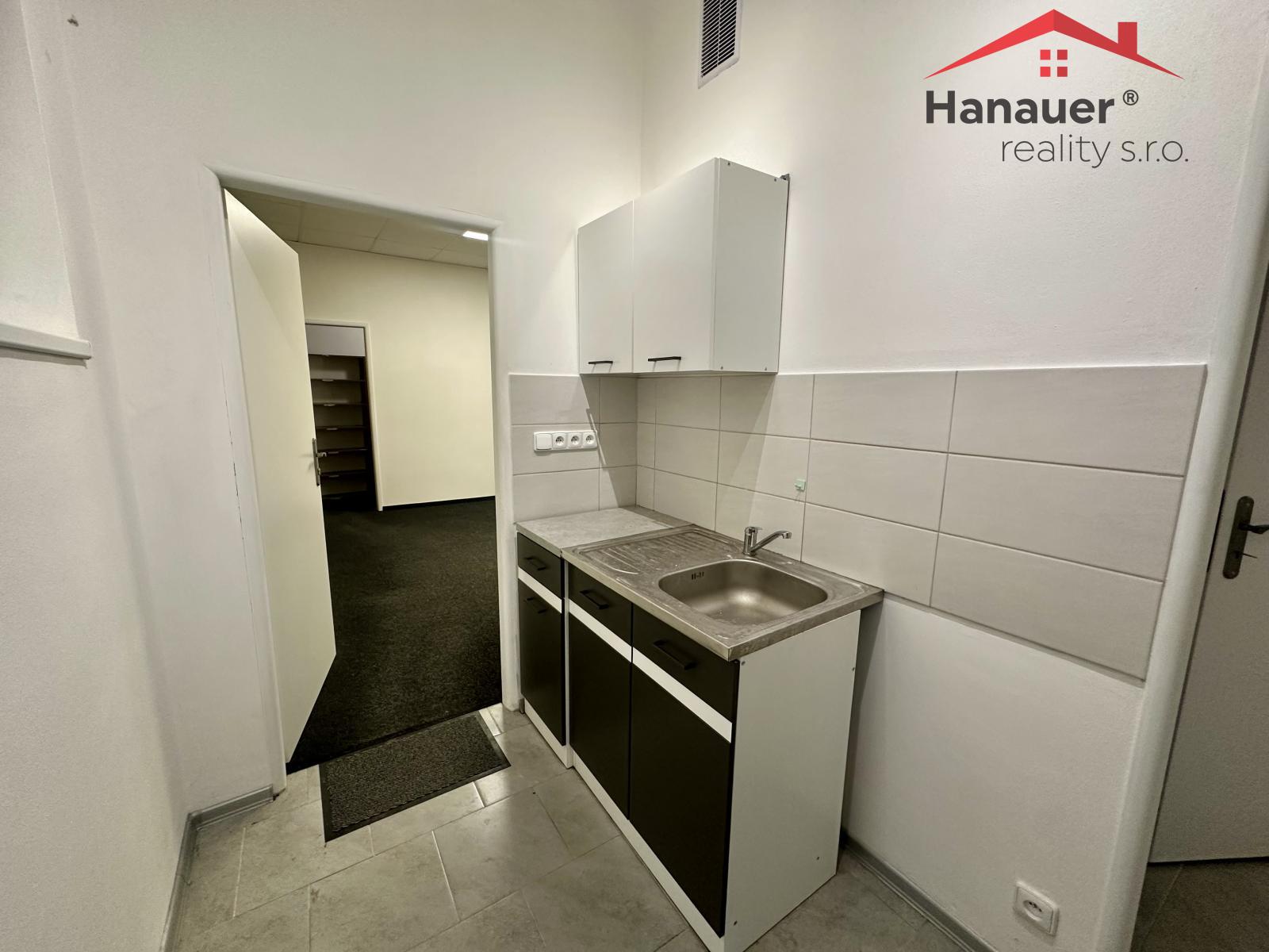 Součástí pronájmu jsou kuchyňka, toalety a další zázemí. Prostor nabízí širokou škálu využití, lze jej případně rozdělit na dvě části. Jedna část byla využívána jako showroom uměleckých stěrek větší místnost s výlohou a vlastní kanceláří druhá část je vhodná pro další obchodní či kancelářské účely. Preferujeme pronájem celého prostoru, aby novému nájemci vznikla maximální flexibilita. Prostor je čerstvě vymalován, součástí je i klimatizace.