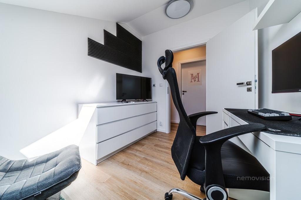 Byt je vhodný pro rodinné bydlení i pro všechny, kteří hledají kombinaci moderní architektury a klidného venkovského prostředí.