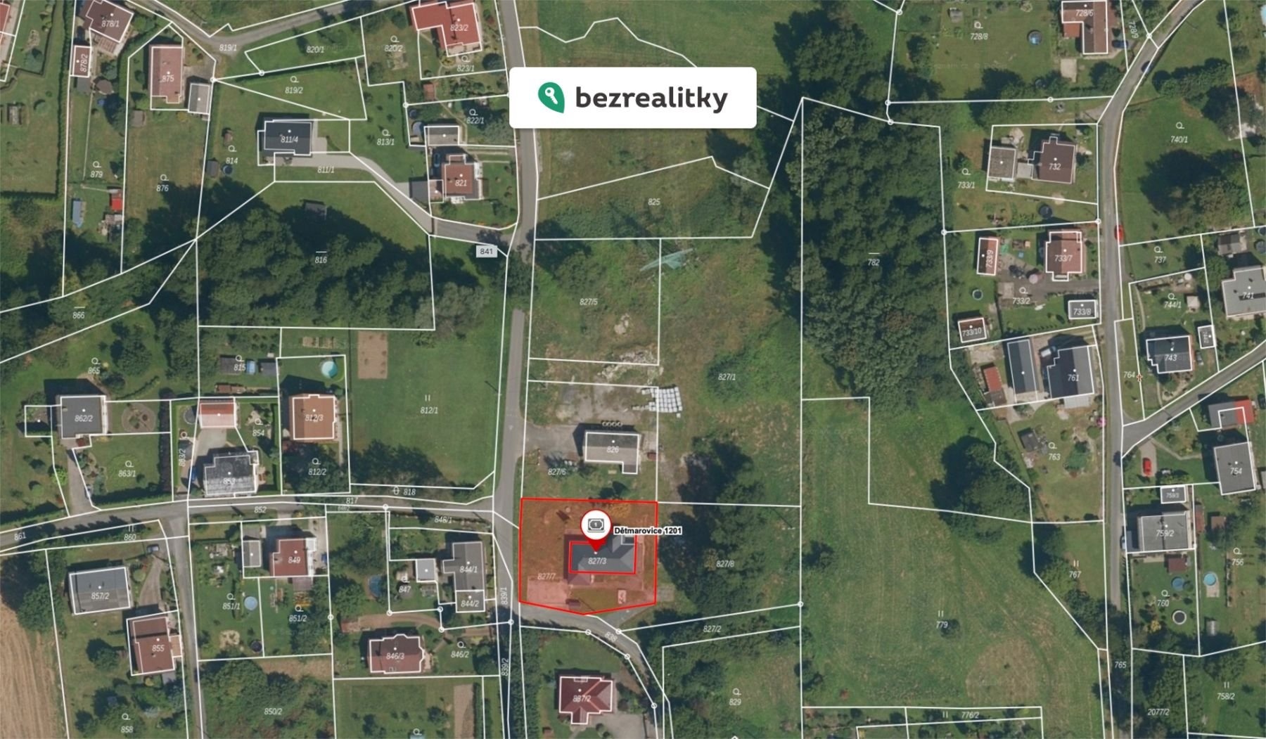 Dům stojí na pozemku o celkové výměře 1 246 m² (197 m² zastavěná plocha + 1 049 m² zahrada). Podlahová plocha domu činí cca 158,9 m².