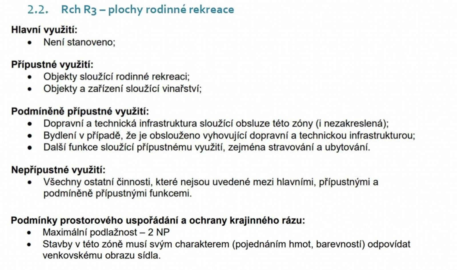 Dle aktuálního územního plánu je pozemek vhodný pro výstavbu objektů sloužících pro rodinnou rekreaci plus objekty a zařízení sloužící vinařství., označení Rch. Podrobnější informace naleznete ve fotogalerii. Všechny inženýrské sítě jsou u hranice pozemku.