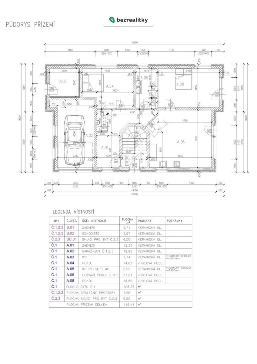 V přízemí je velký byt 3 kk o velikosti 82,0 m2, ke kterému náleží zahrada velikosti 175 m2 určená k užívání pouze pro tento byt v přízemí. Byt má zádveří, halu, velký obývací pokoj s kuchyní a jídelnou přímo napojený na venkovní terasu a zahradu, pokoj, ložnici s východem na zahradu, WC s koupelnou a samostatné WC. CENA ZA BYTOVOU JEDNOTKU 8,00 mil. Kč