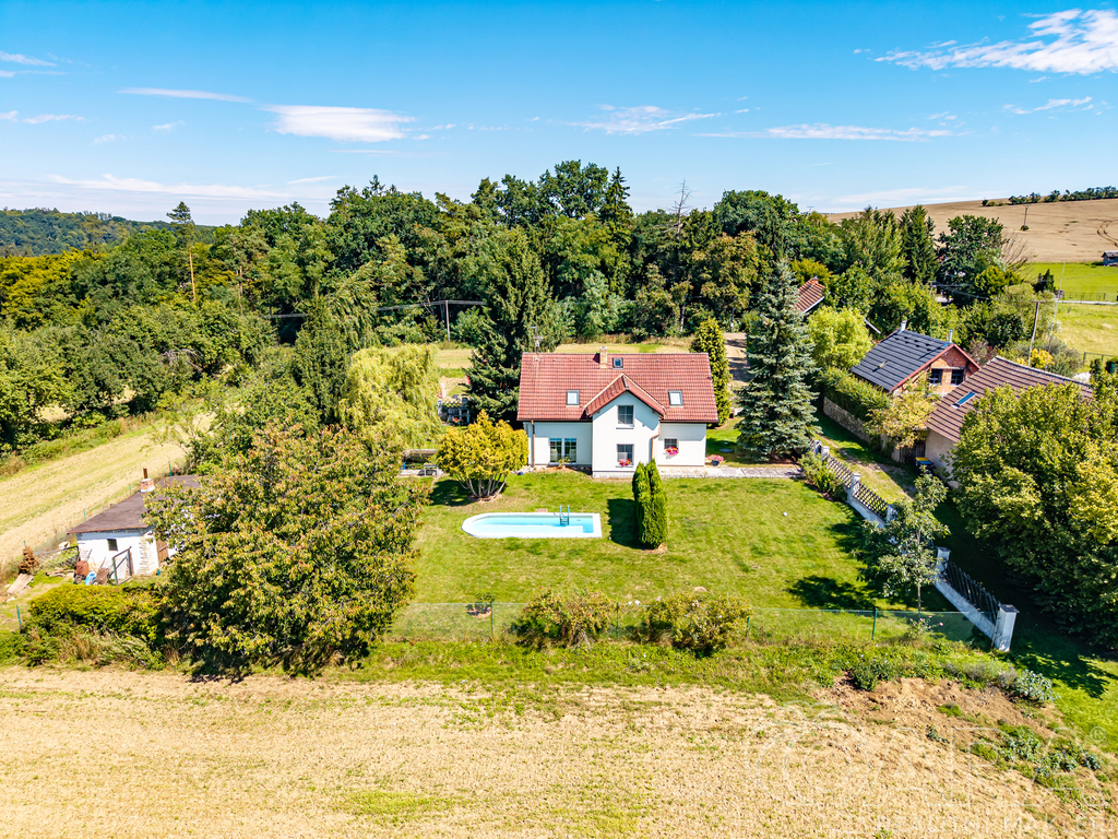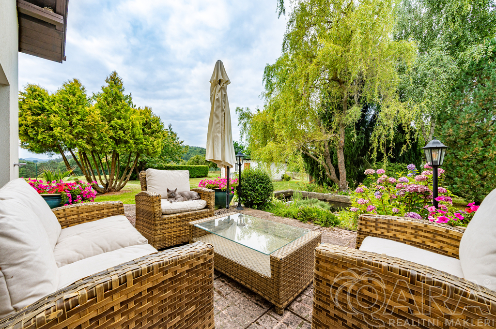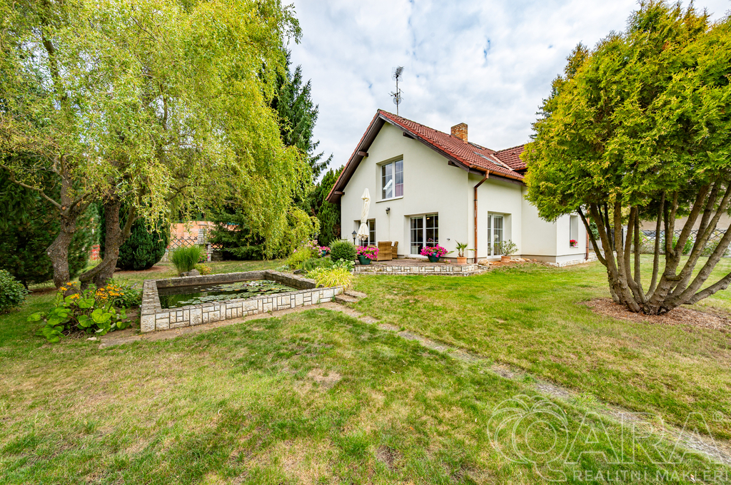 Stylový rodinný dům 4+kk se zahradou, bazénem a jezírkem v Radonicích u Divišova