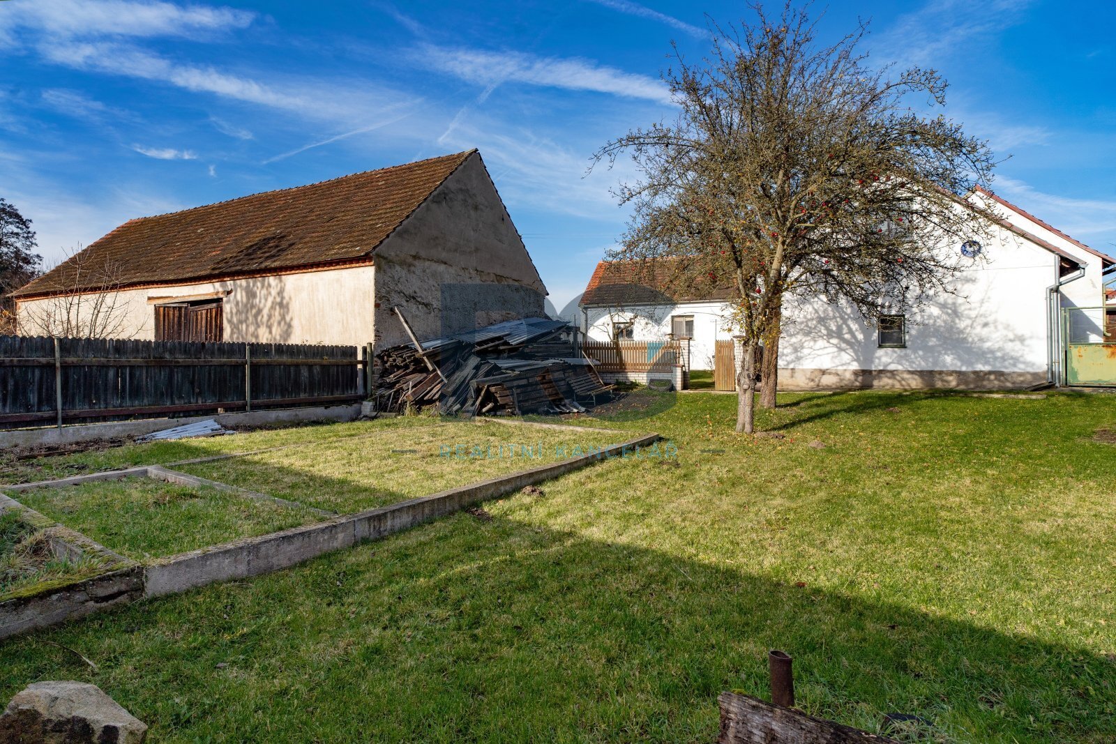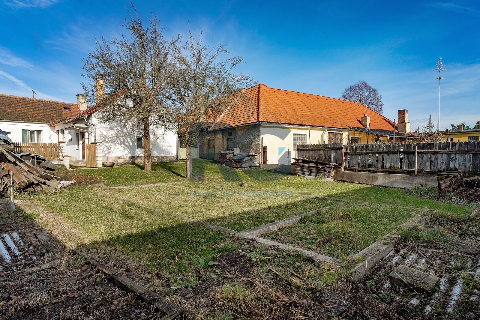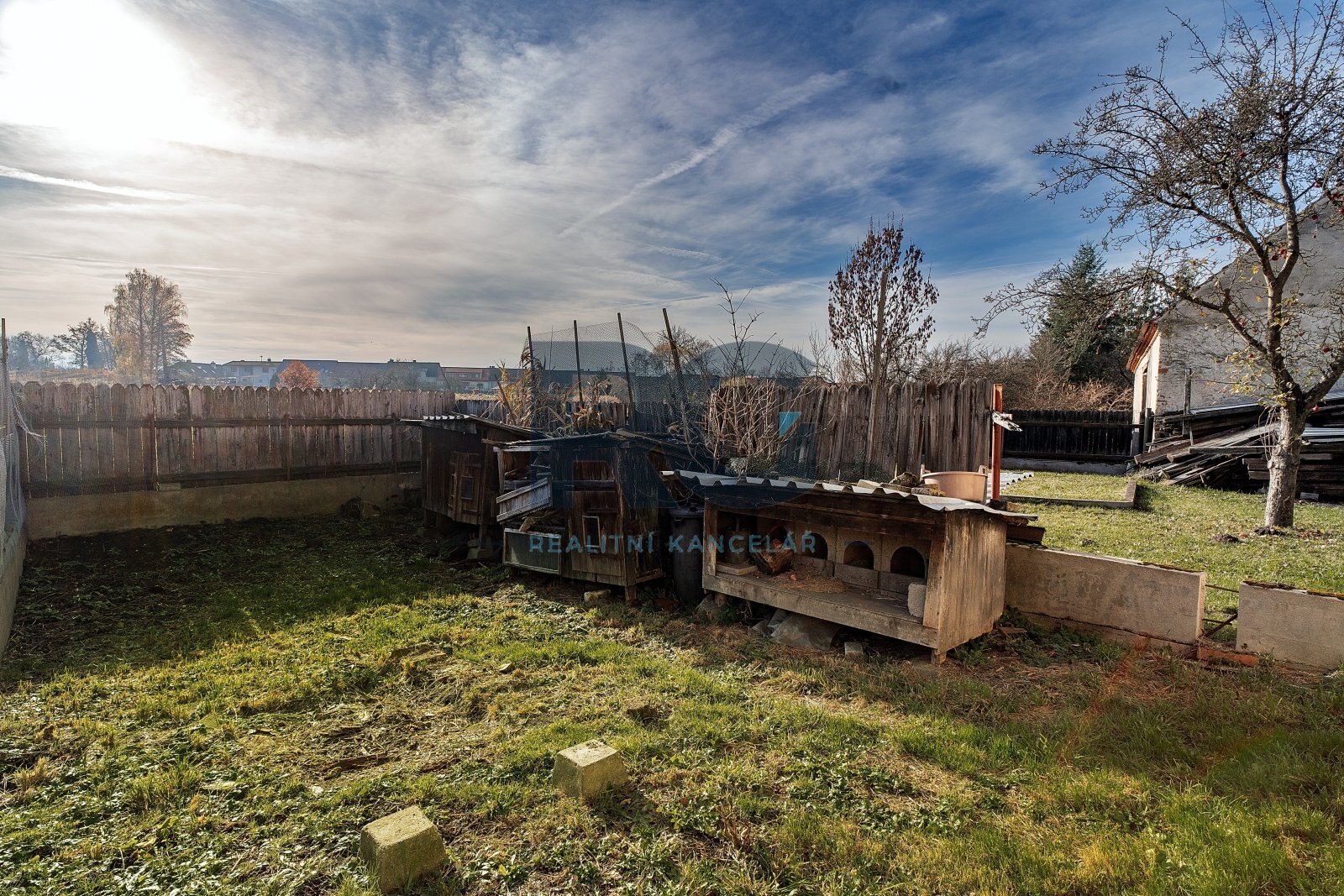 Pozemek navazuje na zahradu s ovocnými stromy.