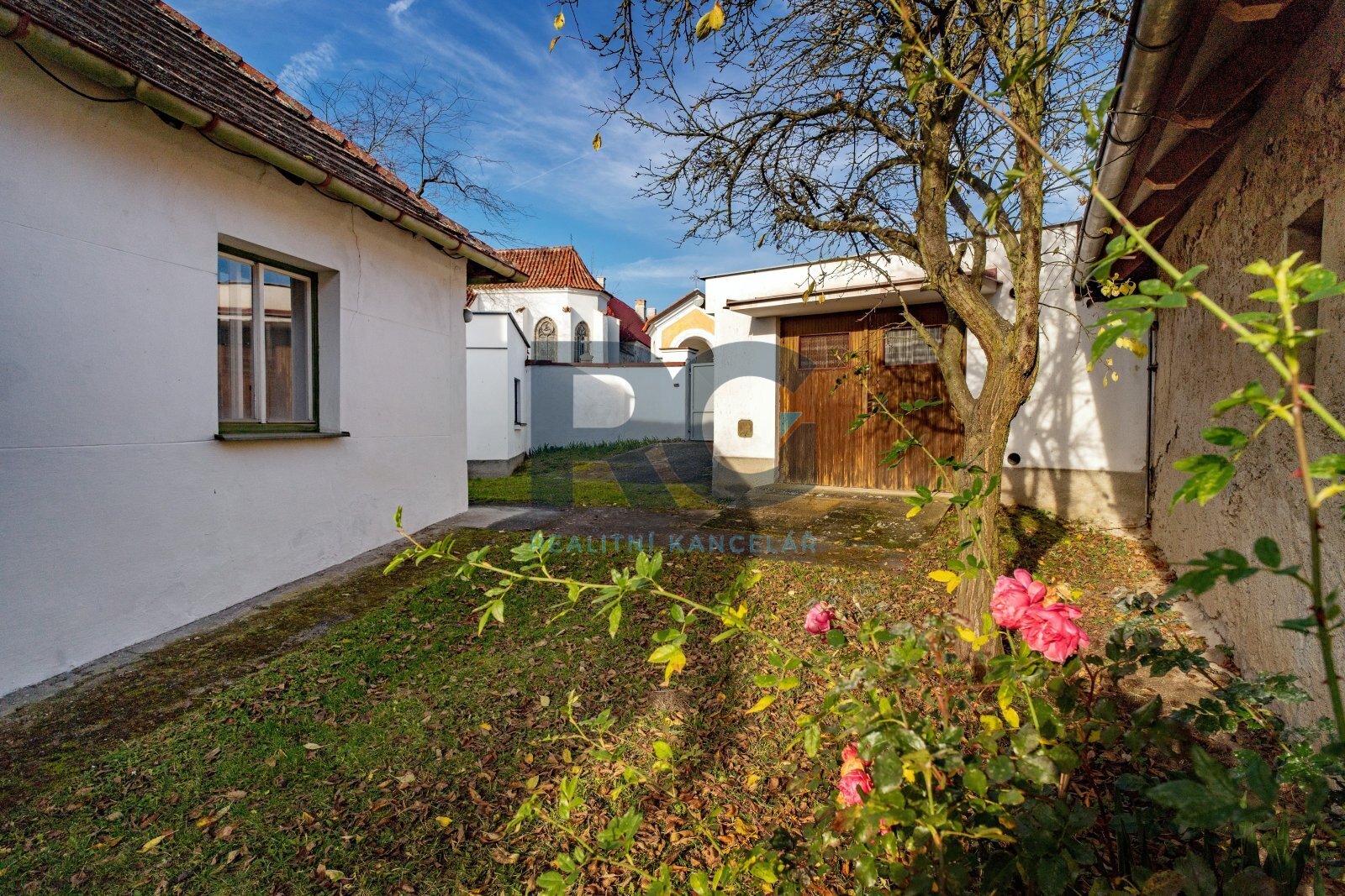 V prostorách uzavřeného dvora se nachází dílna a garáž, která je částečně podsklepená.
