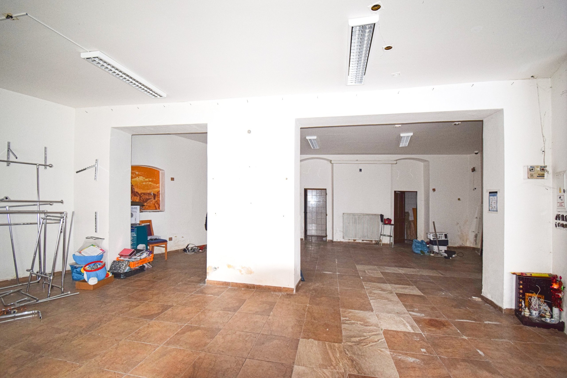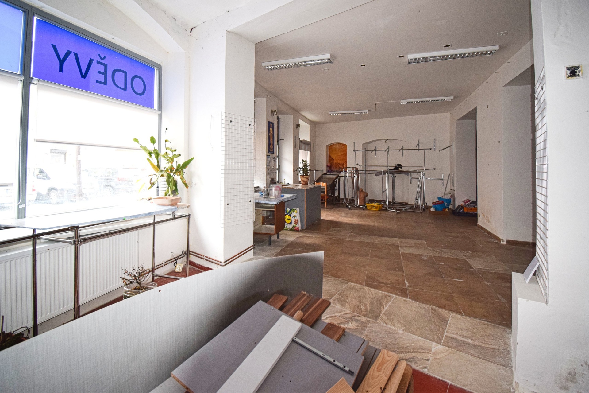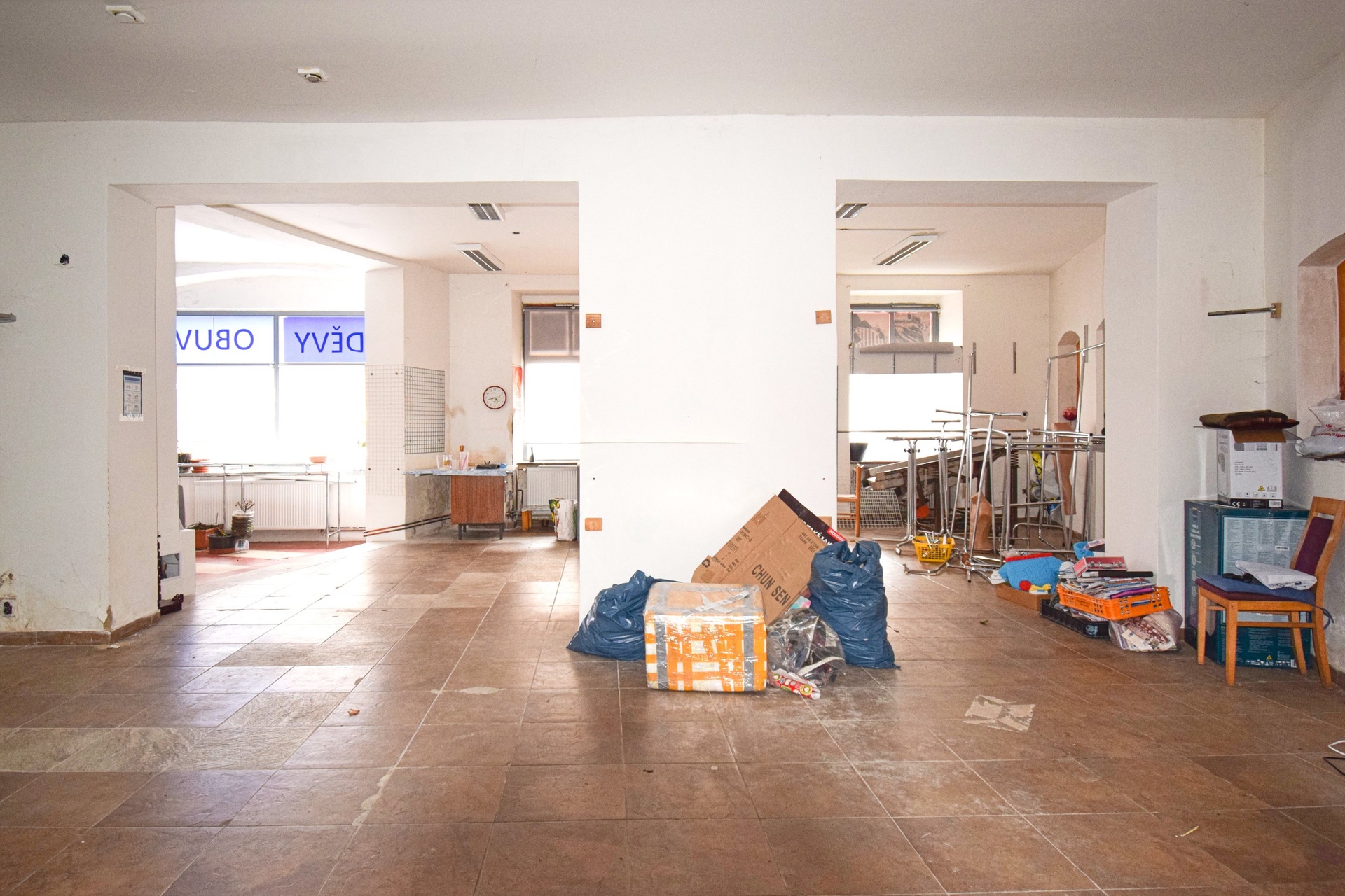 Prostor se nabízí bez vybavení. Je tvořen jednou velkou místností různě přepaženou stěnami, takže je zde možné vytvořit i několik menších místností v případě, že by zde zájemce chtěl vytvořit kaneláře, kosmetické, kadeřnické služby, apod.