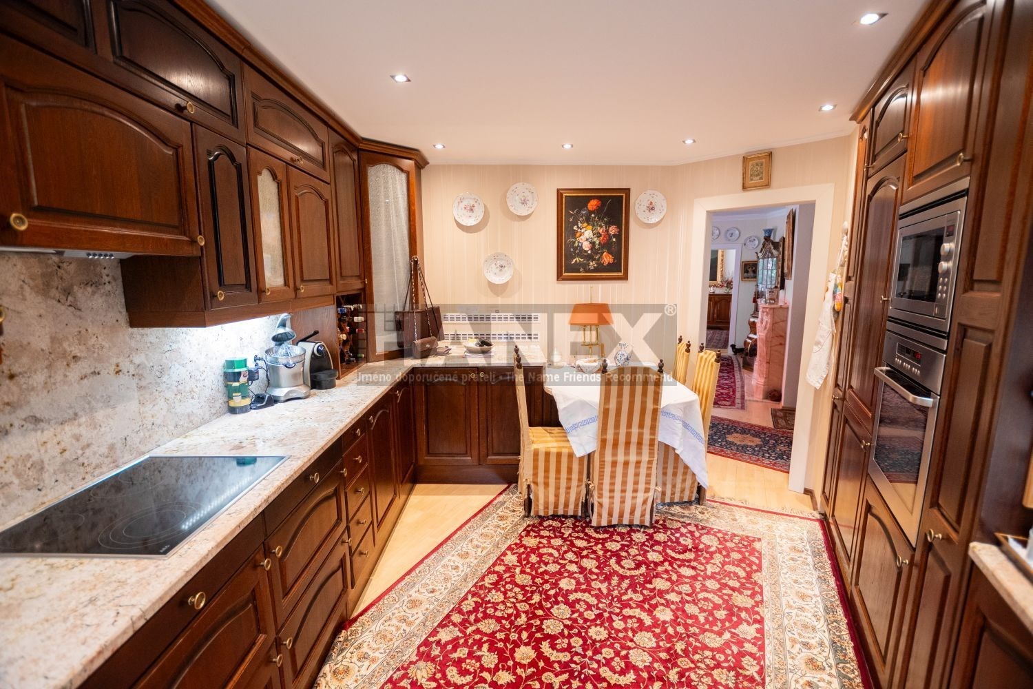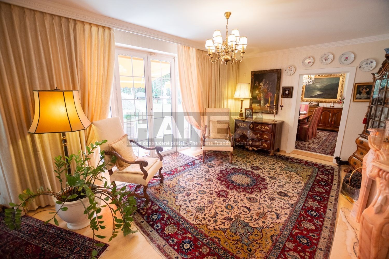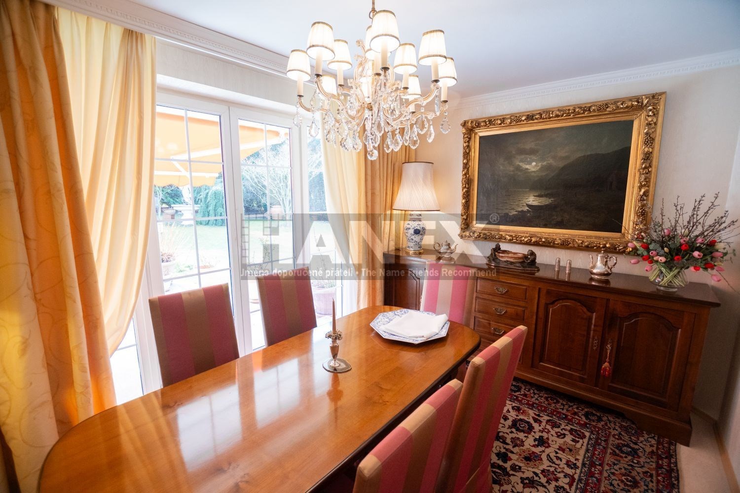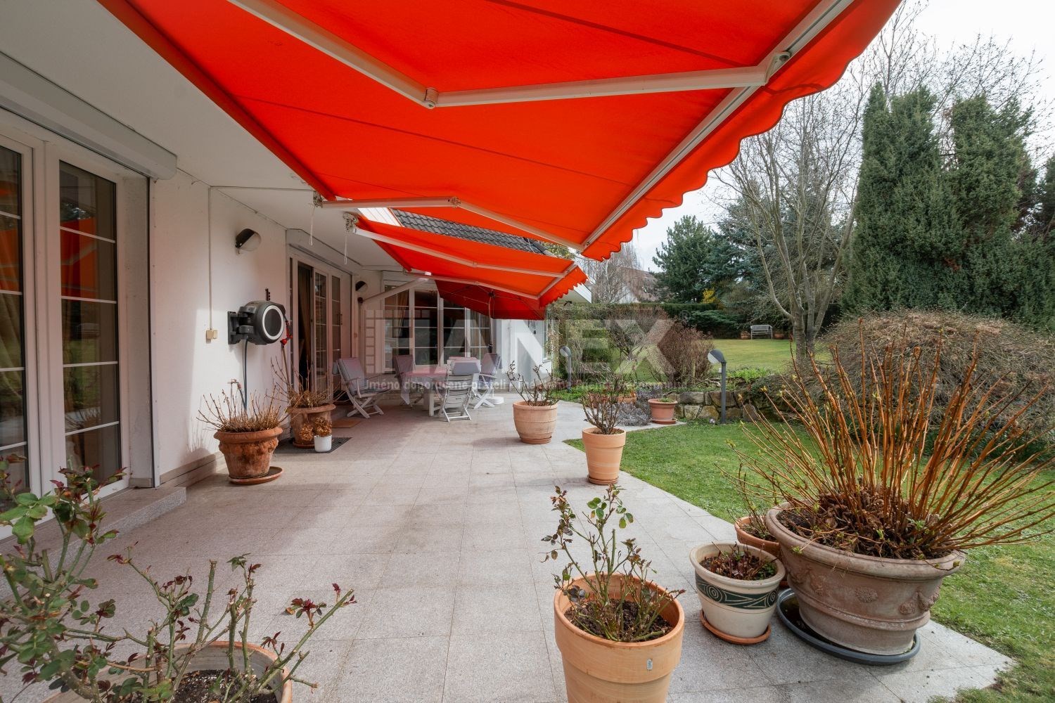 Vybavení domu: alarm, solární panely, funkční krb, venkovní rolety, sluneční markýzy, vestavěné kuchyňské spotřebiče, zahradní nábytek a technika, pojezdová brána a garážová vrata na dálkové ovládání, zámková příjezdová cesta, automatické zavlažování, studna na pozemku.