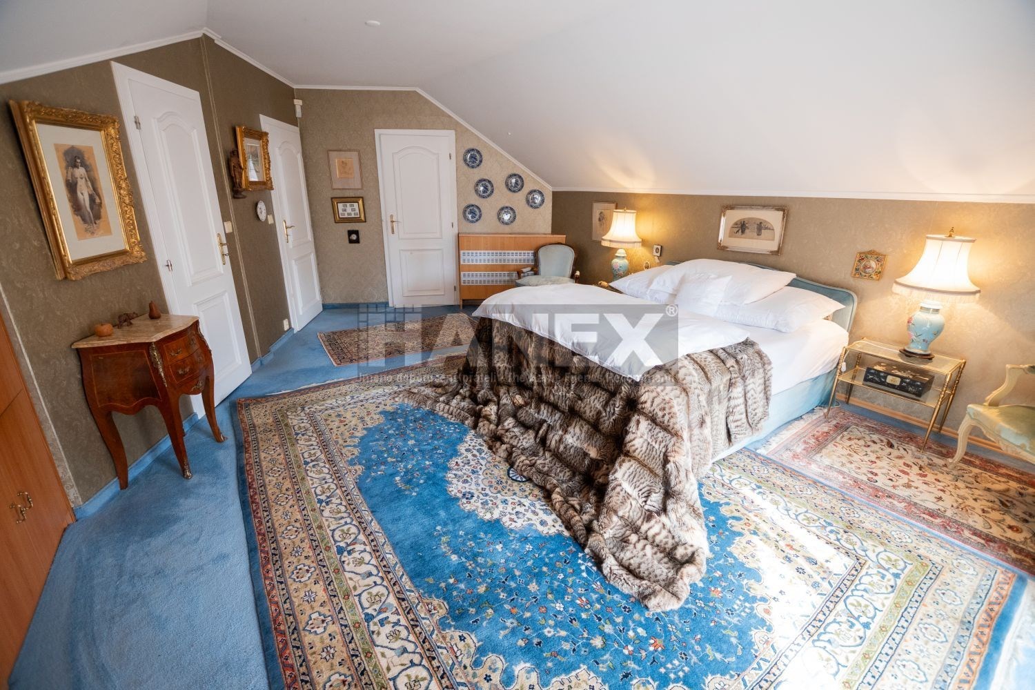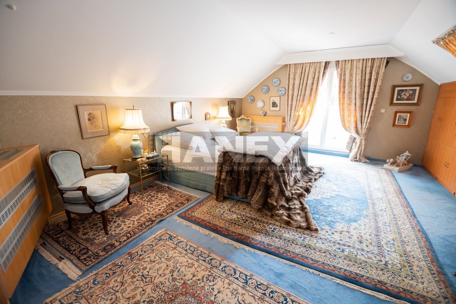 Celkem dům nabízí 4 samostatné ložnice, 3 koupelny a 3 toalety. Velké množství úložného prostoru ve vestavěných skříních, regálech a komodách.