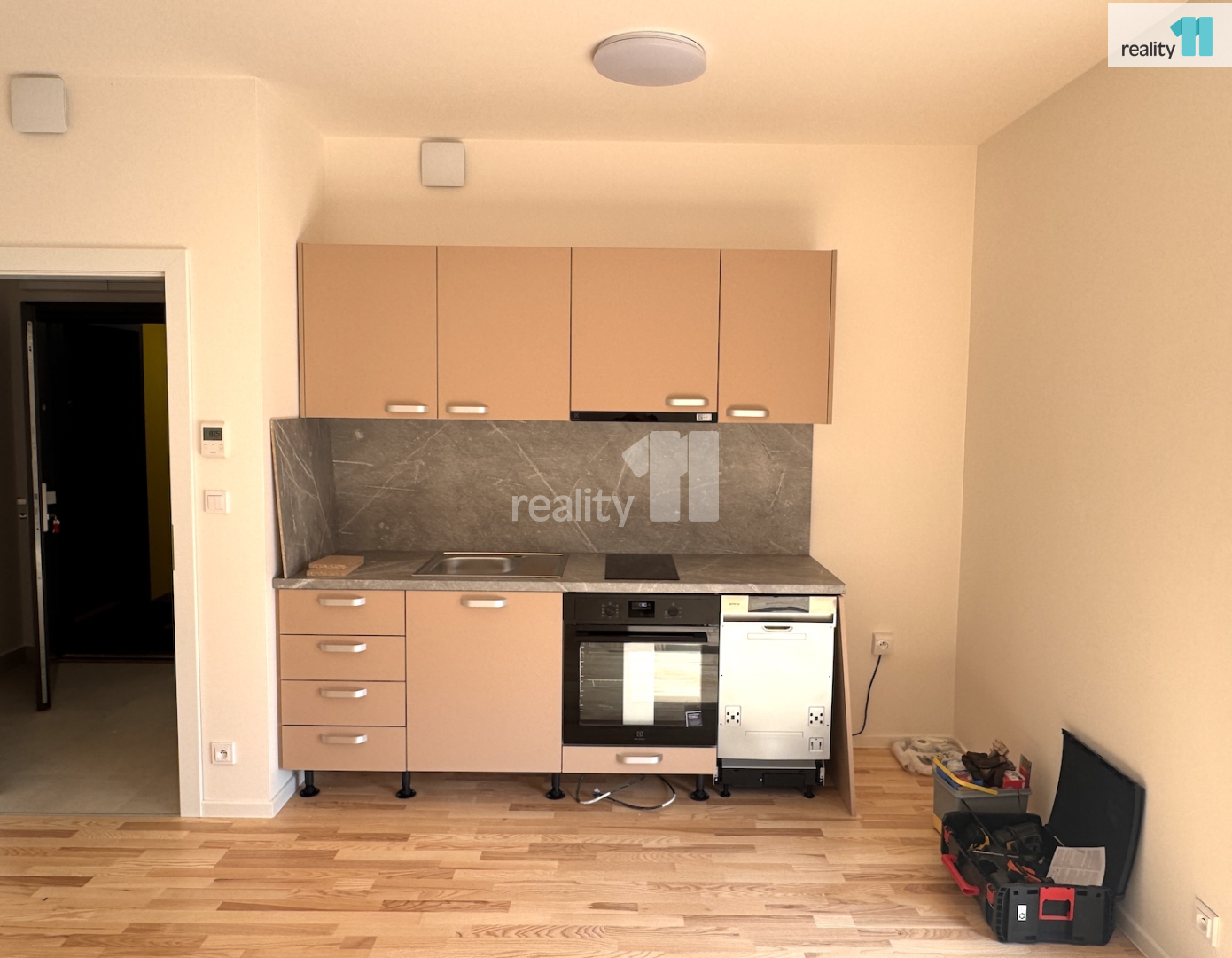 Nezařízený byt, s výměrou 32.4 m², je dispozičně rozdělen na vstupní chodbu, ze které se vchází do obytného pokoje, kde bude nová kuchyňská linka na míru (bude zde varná deska, trouba, myčka), s francouzským oknem a vstupem na předzahrádku (59 m², bude zatravněná). Koupelna s vanou a toaletou. V celém bytě použity kvalitní, moderní materiály v neutrálních barvách - dřevěné podlahy, rekuperace, podlahové topení v koupelně, venkovní rolety. Velkou výhodou bytu je úložný prostor - zděný sklep a vlastní parkovací stání. V domě je také kolárna.