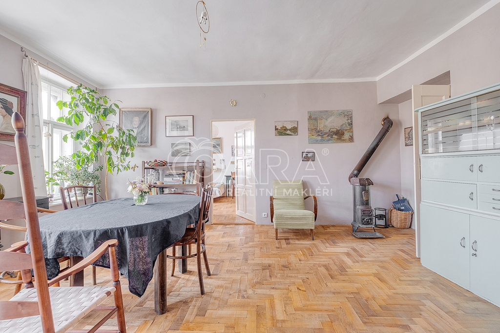 V prvním patře jsou dva byty aktuálně užívané jedním majitelem, oba byty mají přístup na zelenou střechu užívanou jako terasa, ze které lze sestoupit do navazující zahrady. Dispozičně se jedná o byt 3+1 (83,5 m2), který byl v roce 2009 kompletně rekonstruován včetně el. rozvodů, a dále byt 2+kk s balkonem (51 m2).