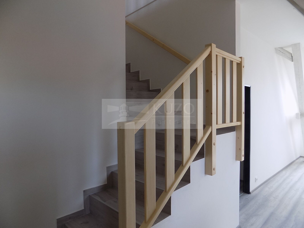 KUZO Partners s.r.o. Vám zprostředkují exkluzivně možný pronájem novostavby atypického mezonetového bytu 2+kk v nově zrekonstruovaném bytovém domě, bývalém Špýcharu, který se nachází v těsné blízkosti centra města Dobříš. Byt v OV o celkové podlahové ploše 58 m2 se nachází ve čtvrtém nadzemním podlaží čtyřpatrového cihlového domu s výtahem a bezbariérovým přístupem. Nestandardní členění bytu je následující: vstupní chodba, odtud vlevo vcházíme do kuchyně s komorou, novou kuchyňskou linkou a sporákem spojené s jídelním koutem a obývacím prostorem, odtud po schodech vystoupáme do atypického podkroví, ložnice, orientované na západ s famózním výhledem na město a okolí. Z chodby vpravo vstoupíme do samostatné koupelny se sprchovým koutem, umyvadlem, koupelnovým radiátorem a WC. Bytový dům, který disponuje deseti bytovými jednotkami, prošel nadstandardní kompletní rekonstrukcí a rozhodně uspokojí náročné klienty s požadavky vysokého standardu bydlení. Parkování je možné v těsné blízkosti domu v neplacené zóně. V blízkosti domu je veškerá občanská vybavenost. Nájemné včetně poplatků činí měsíčně 19500,- Kč ( 16000,- Kč nájemné a 3500,- Kč záloha služby/ 2 osoby). Vratná kauce činí 39000,- Kč. Energie bude převedena na nájemce. Ostatní informace v RK.