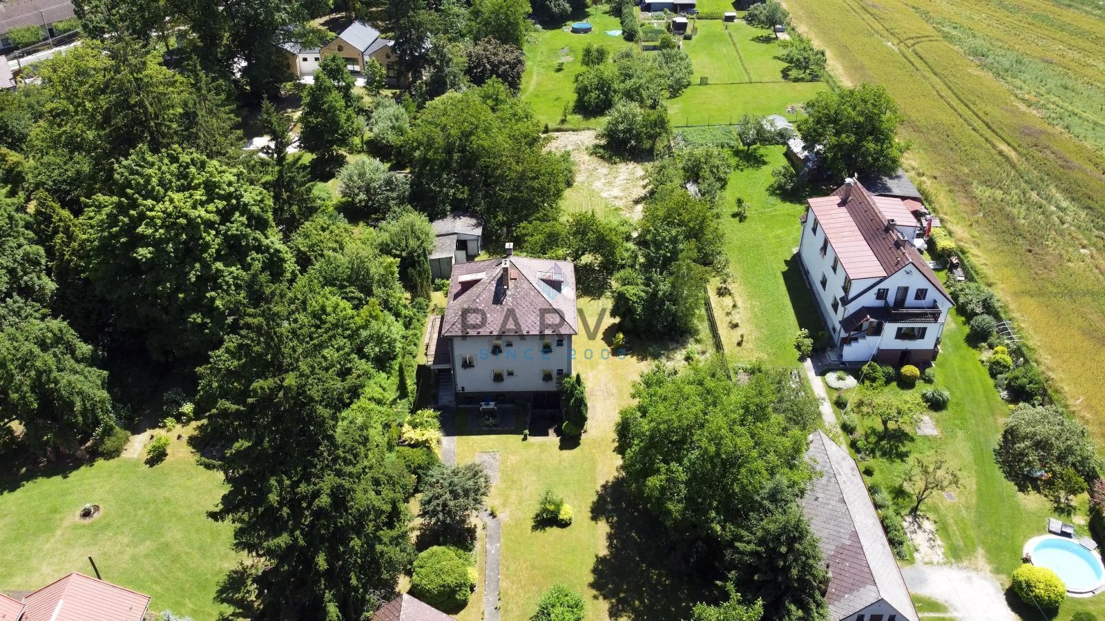 Součástí nabídky je také samostatně stojící garáž či dílna o zastavěné ploše 59 m² – ideální prostor pro kutily, skladování nebo drobné podnikání. Okolní zahrada je téměř rovinatá, osázena vzrostlými ovocnými stromy a dalšími okrasnými dřevinami, přičemž celý pozemek působí velmi soukromě a klidně.
