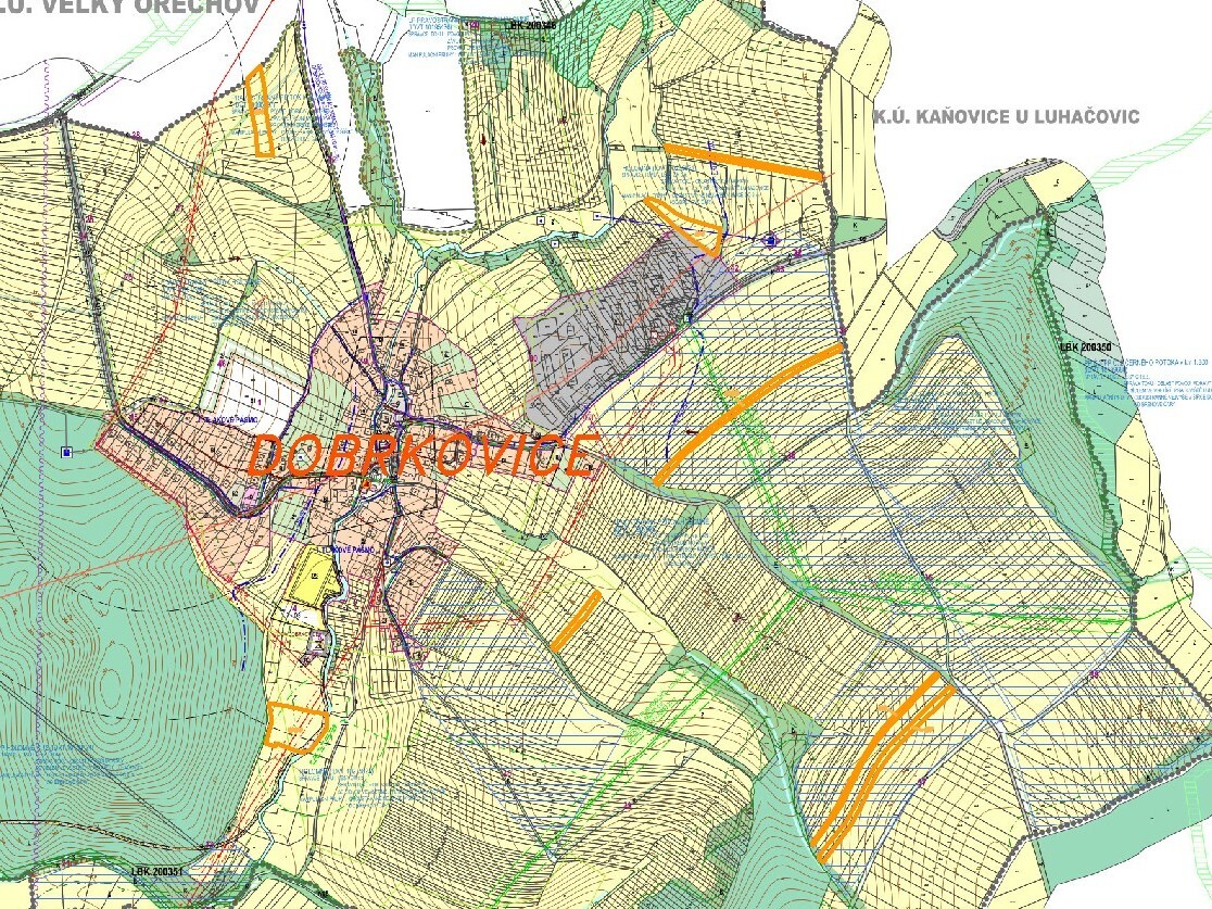 Předmětem dražby je soubor pozemků o celkové výměře 30 313 m2 v obci Dobrkovice. Pozemky jsou dle katastru nemovitostí vedeny jako orná půda a trvalý travní porost. Dobrkovice jsou zemědělská obec ležící v hlubokém údolí Vizovických vrchů 20 km jižně od Zlína. Středem obce protéká malý potok Holomňa, který je přítokem řeky Olšavy. Mezi významné pamětihodnosti obce patří barokní socha sv. Jana Křtitele a dřevěná zvonice z roku 1832. Dobrkovice jsou také názvem katastrálního území. V případě zájmu nás neváhejte kontaktovat. Je vhodné, aby se dražitelé dojeli osobně na pozemky podívat a řádně se s nimi seznámili.