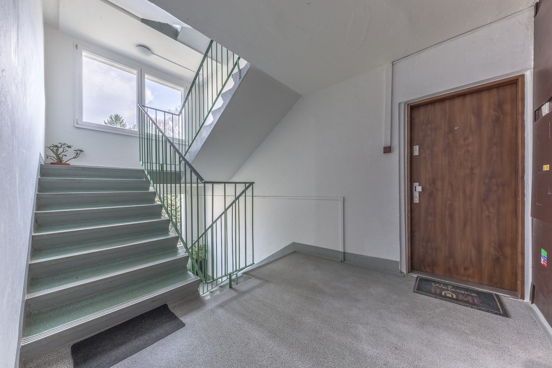 S chodby je vstup do všech místností, takže pokoje jsou neprůchozí s výhledem do zahrady. K domu patří společná zahrada která je dostupná pro všechny bytové jednotky.
