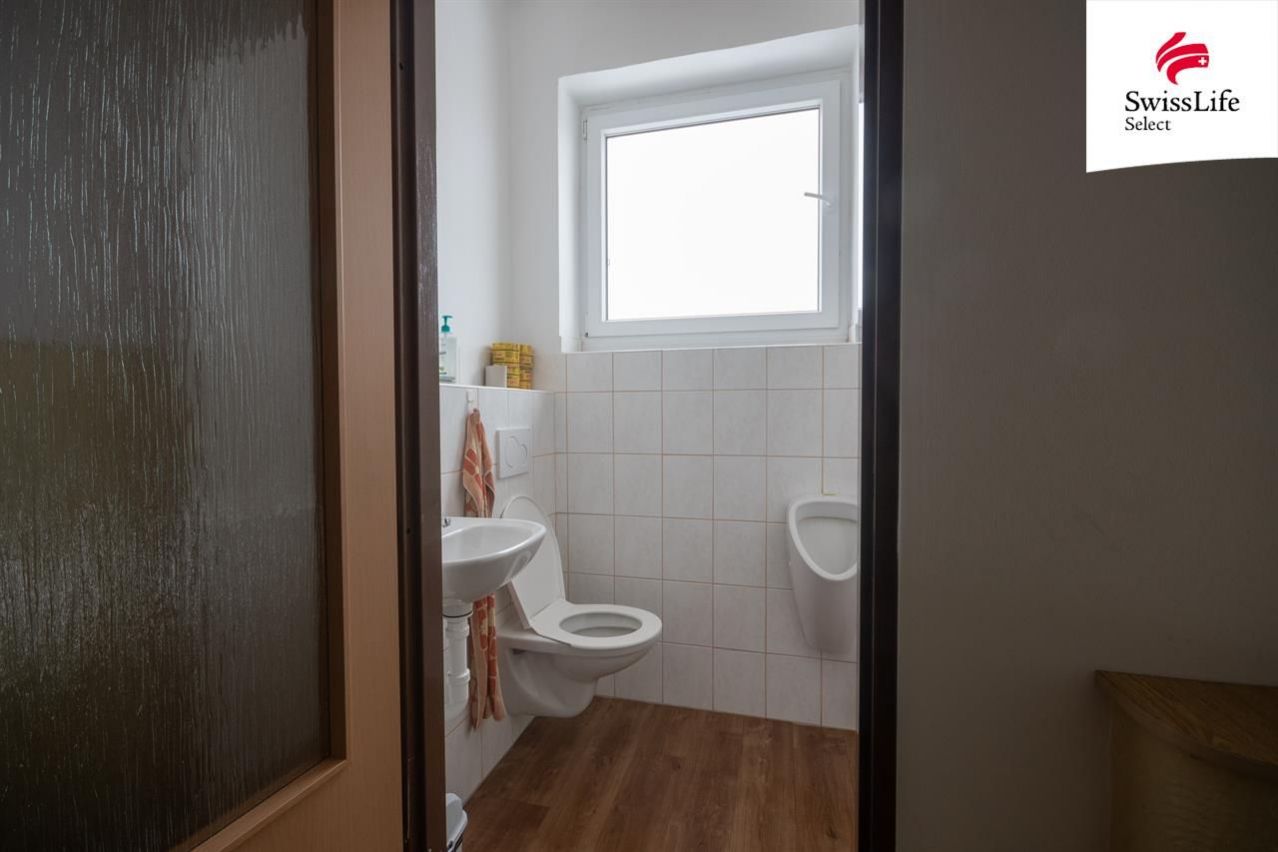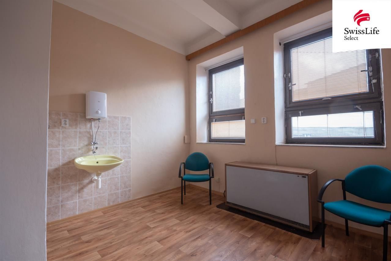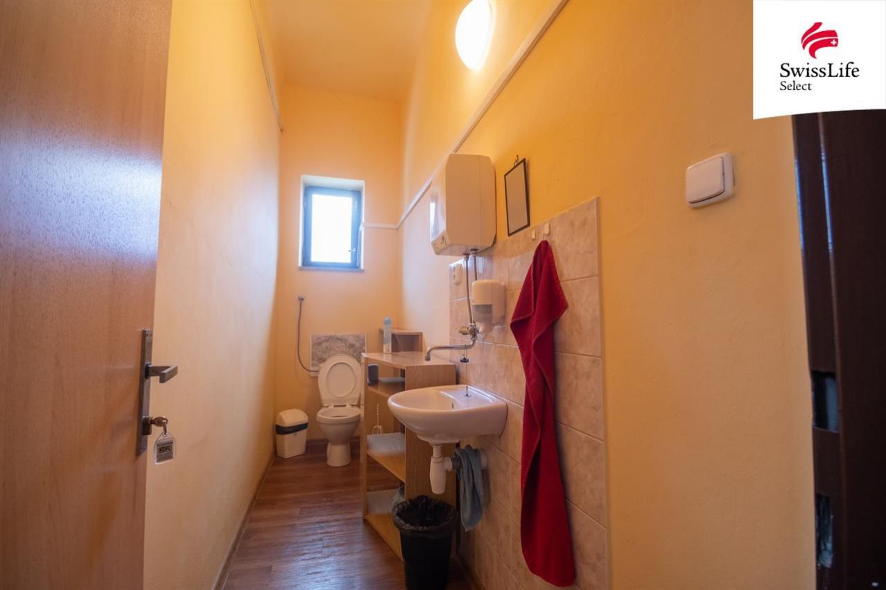 Dům prošel částečnou rekonstrukcí před 3 lety. V budově se nachází 9x kancelář, 4x WC, 2x kuchyňka, úklidová místnost a archiv. Vytápění řešeno akumulačními kamny s termostatem na každé patro zvlášť. Jeden elektroměr na celou budovu. Podsklepeno. Krásné klenby, vhodné pro založení vinného sklepu, celkem 50 m2. Na budově namontovány 4 bezpečnostní kamery se sledovacím systémem, které jsou součástí prodeje.
