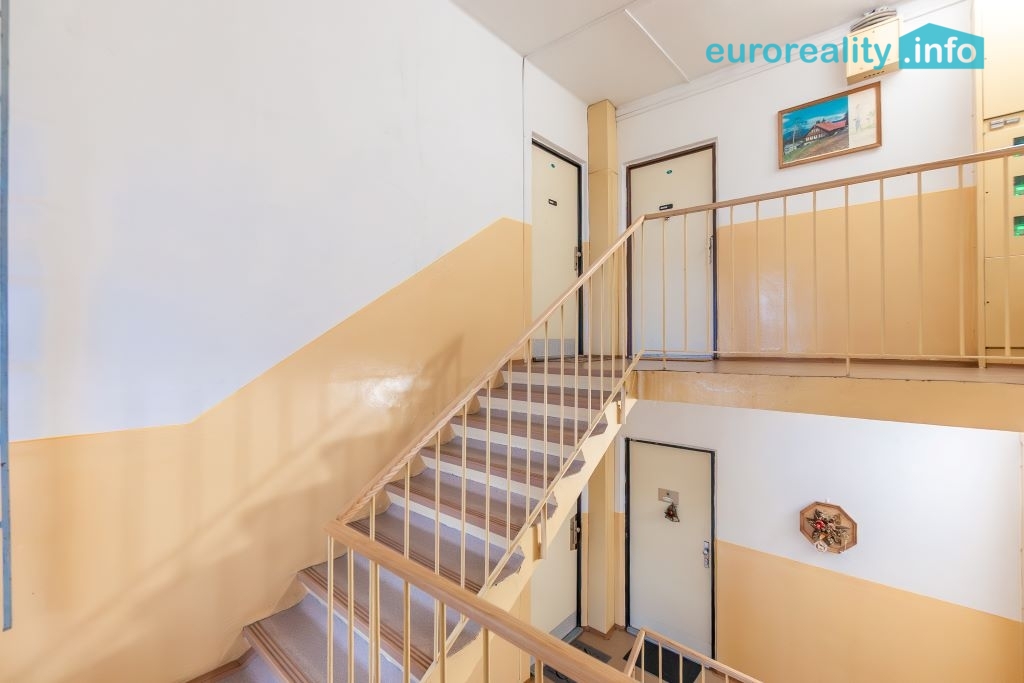 Celková plocha bytu včetně lodžie činí 60 m². Dispozice nabízí praktické řešení – k bytu náleží lodžie, komora přímo v bytě a další výhodou je spíž umístěná v mezipatře. Bytový dům je zateplený, má plastová okna a působí velmi udržovaným a klidným dojmem.