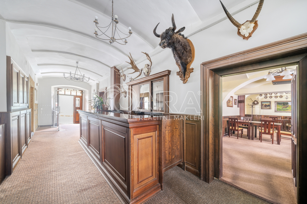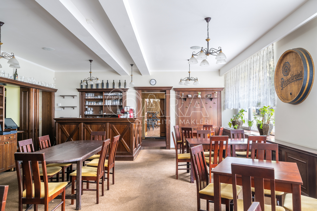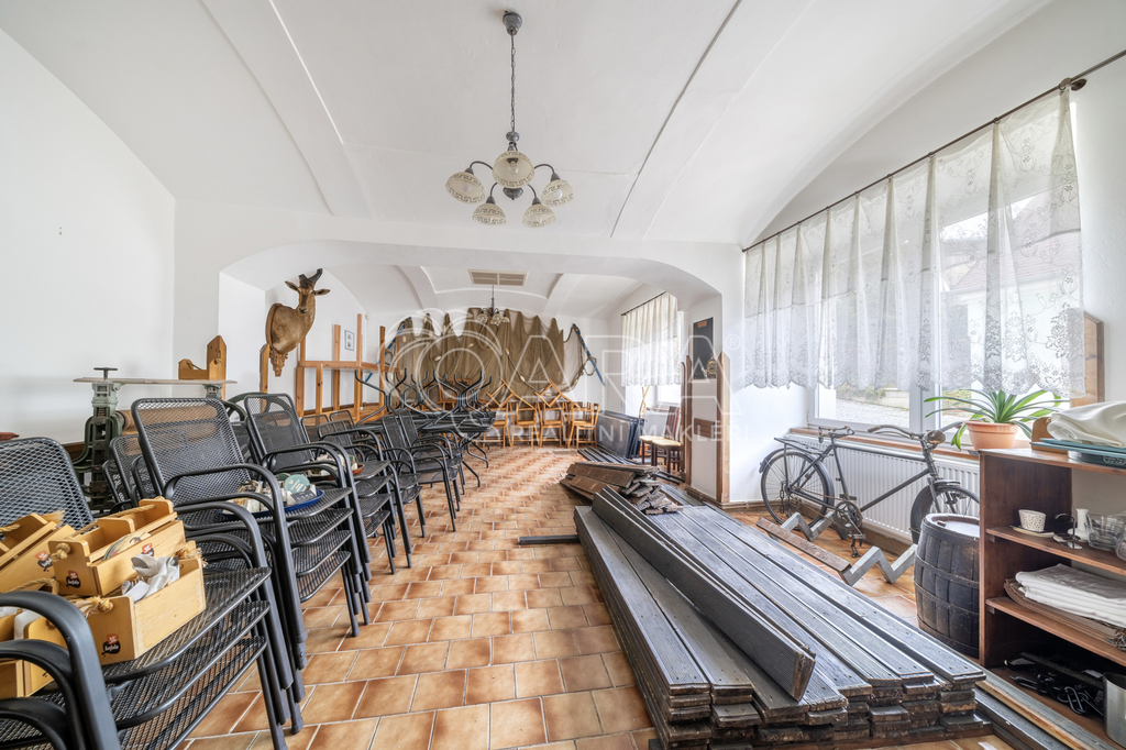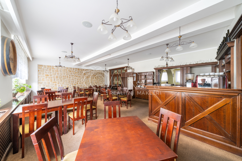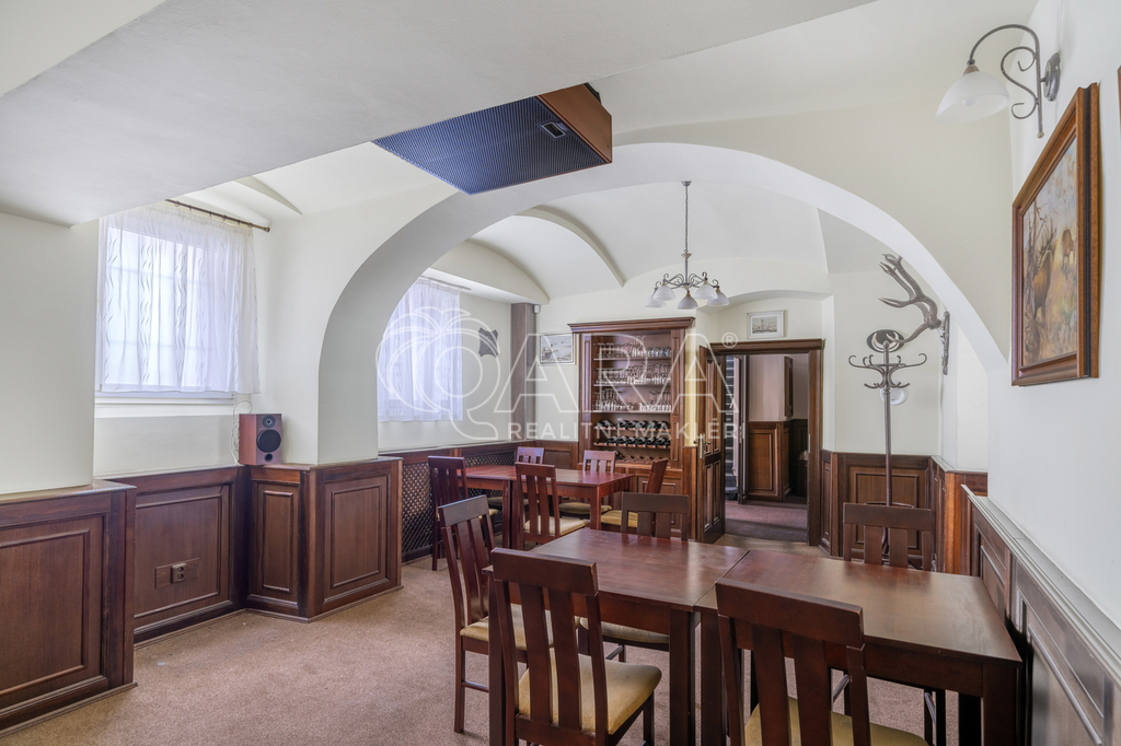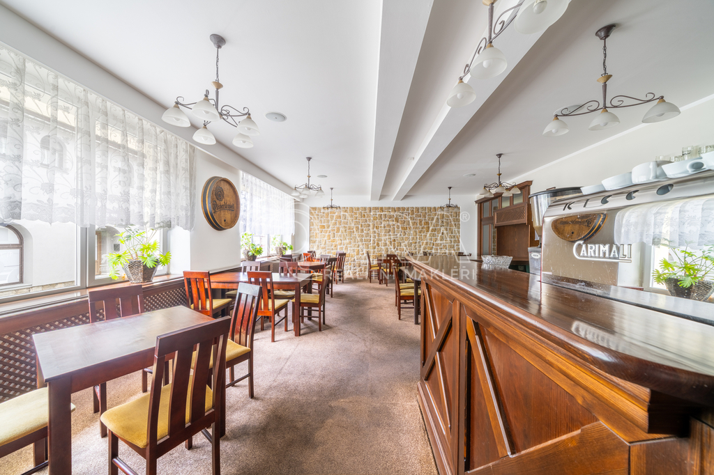 Máte jedinečnou šanci koupit restauraci Heller, která se skládá ze 2 místností, recepce, salónku, kuchyně a skladu s celkovou plochou 261 m2. Restaurace byla vždy zisková a jako jedna z mála byla provozována celoročně. V hlavní sezóně využívala i zahrádku na ulici, celková kapacita je asi 120 míst. Patří k ní i rozsáhlé sklepy ve výhradním užívání a 3 parkovací místa v zadní části. A k tomu všemu ještě rozlehlá půda s vysokými stropy o ploše 165 m2, kde můžete vytvořit 3 ubytovací jednotky. Rozvody jsou připraveny.