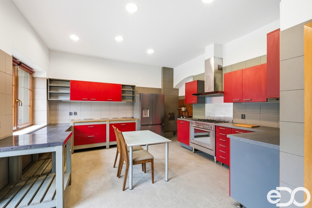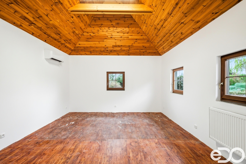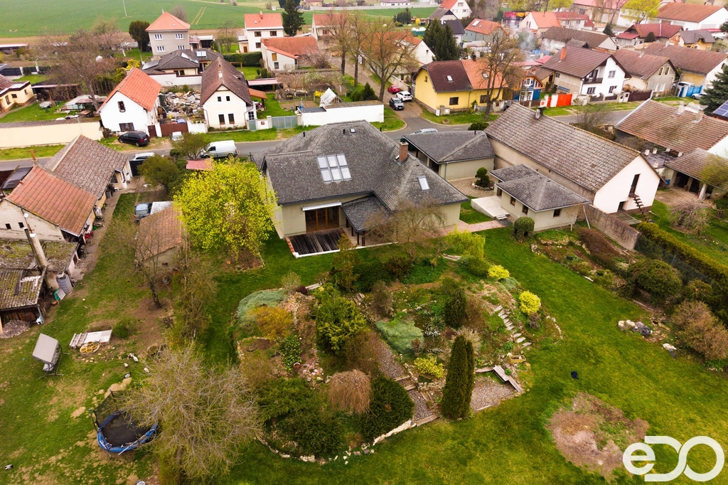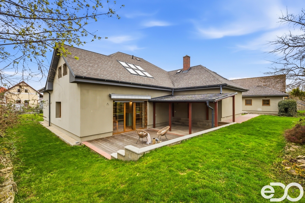 Dům o dvou podlažích nabízí podlahovou plochu cca 326 m² (plus zahradní domek, garáž a dílna) a stojí na pozemku o výměře 2 464 m². Díky své dispozici je ideální pro dvougenerační bydlení nebo kombinaci domova s podnikáním. Interiér zaujme původními kamennými zdmi, benátskými štuky, masivními prvky a vysokým standardem materiálů. Zahrada vás okouzlí prostorem a upravenou skalkou.